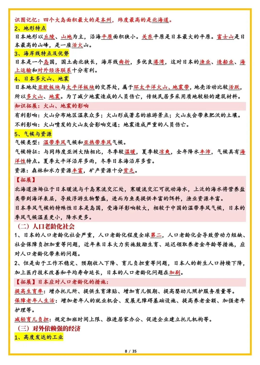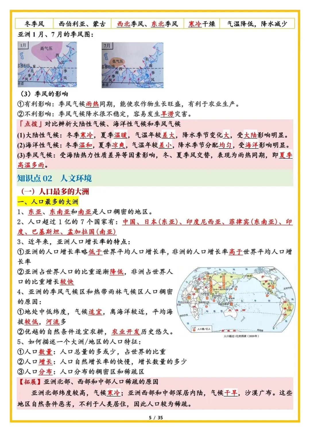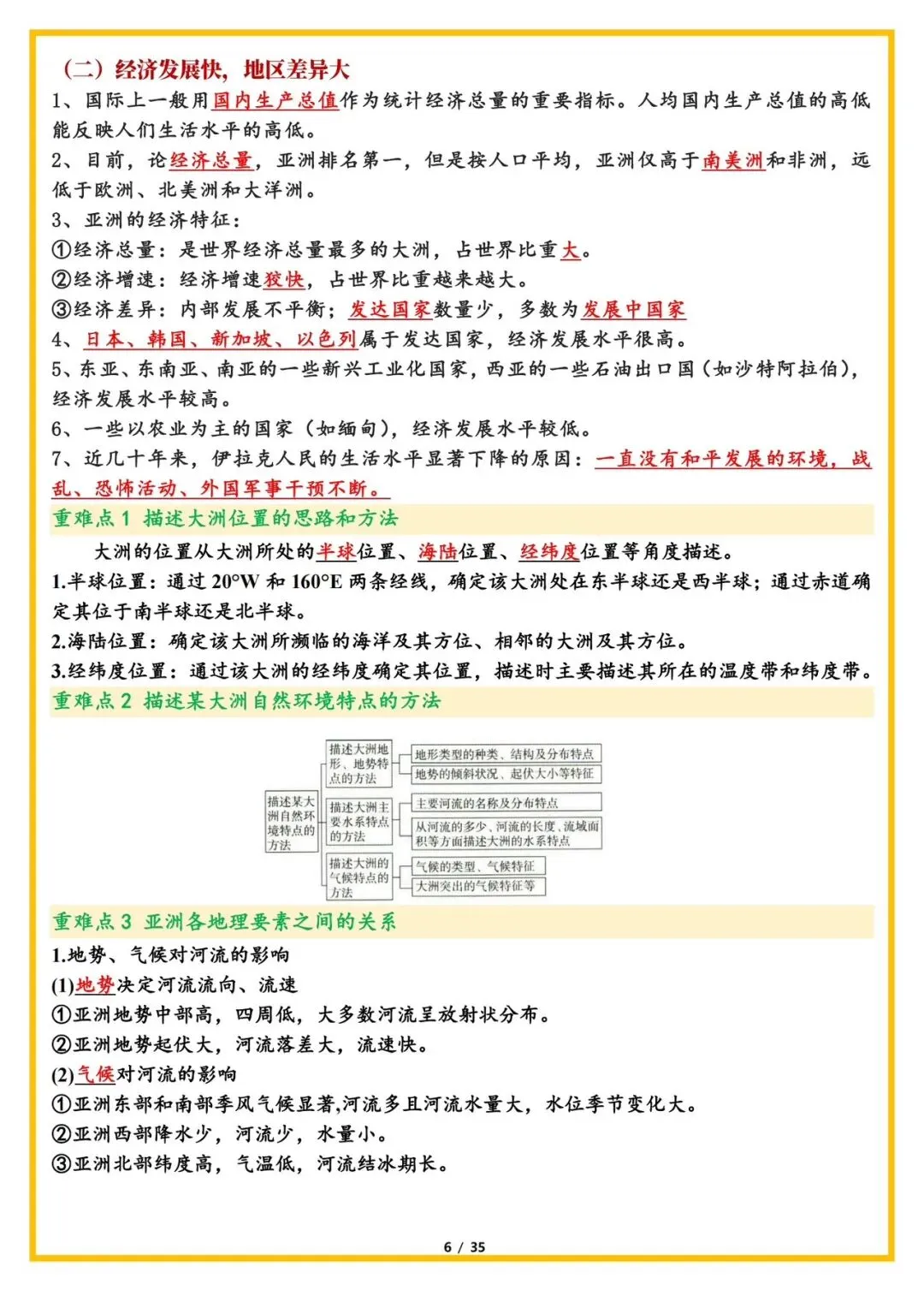 2026版七年级下册地理知识点背诵,可打印电子版!