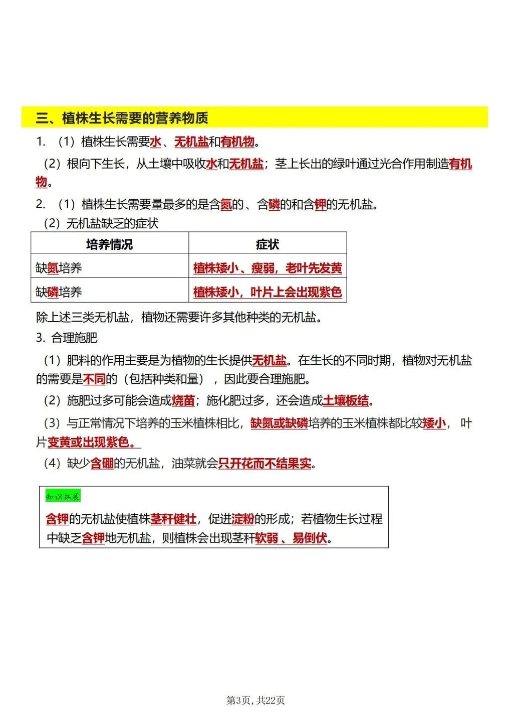 2026版七年级下册生物知识点背诵,可打印电子版!