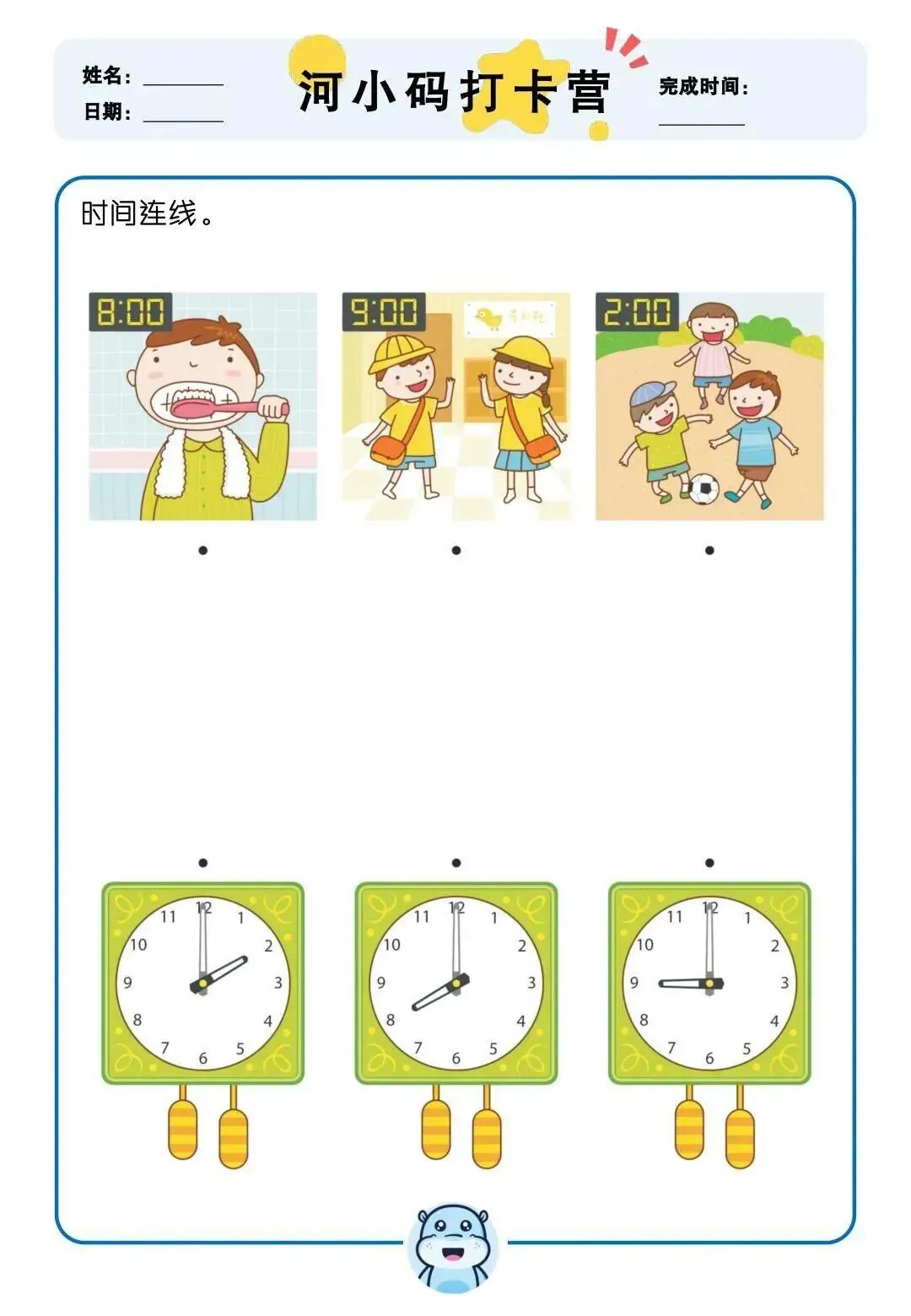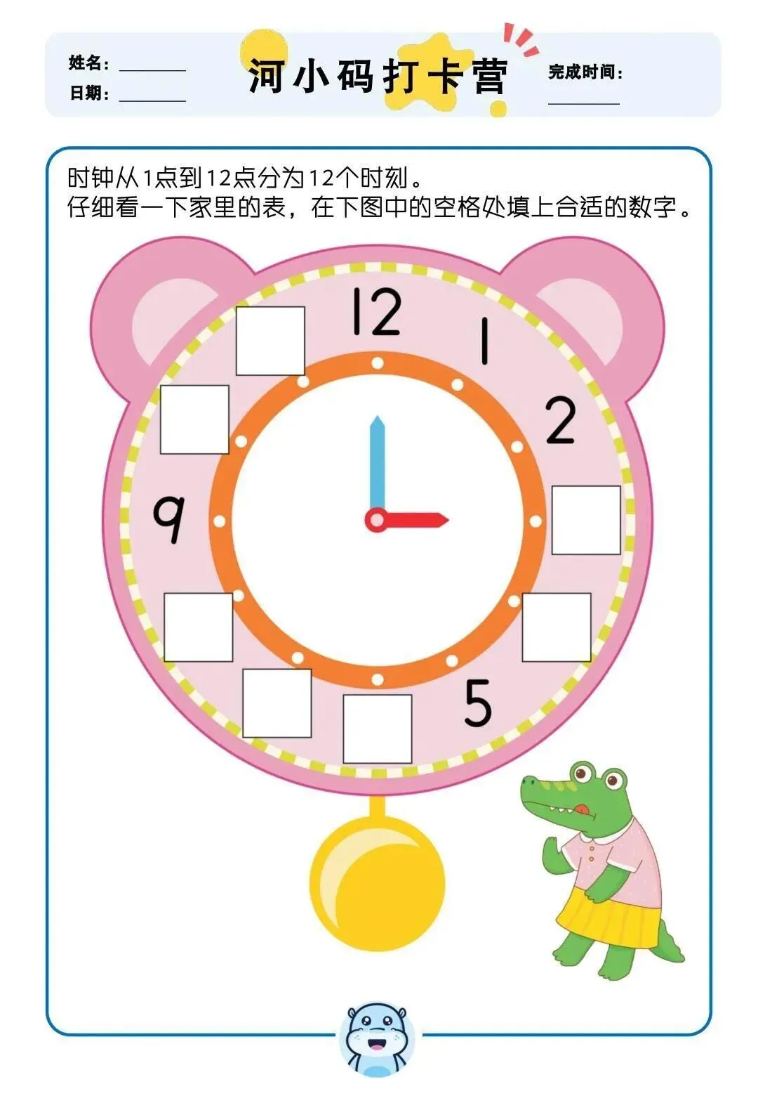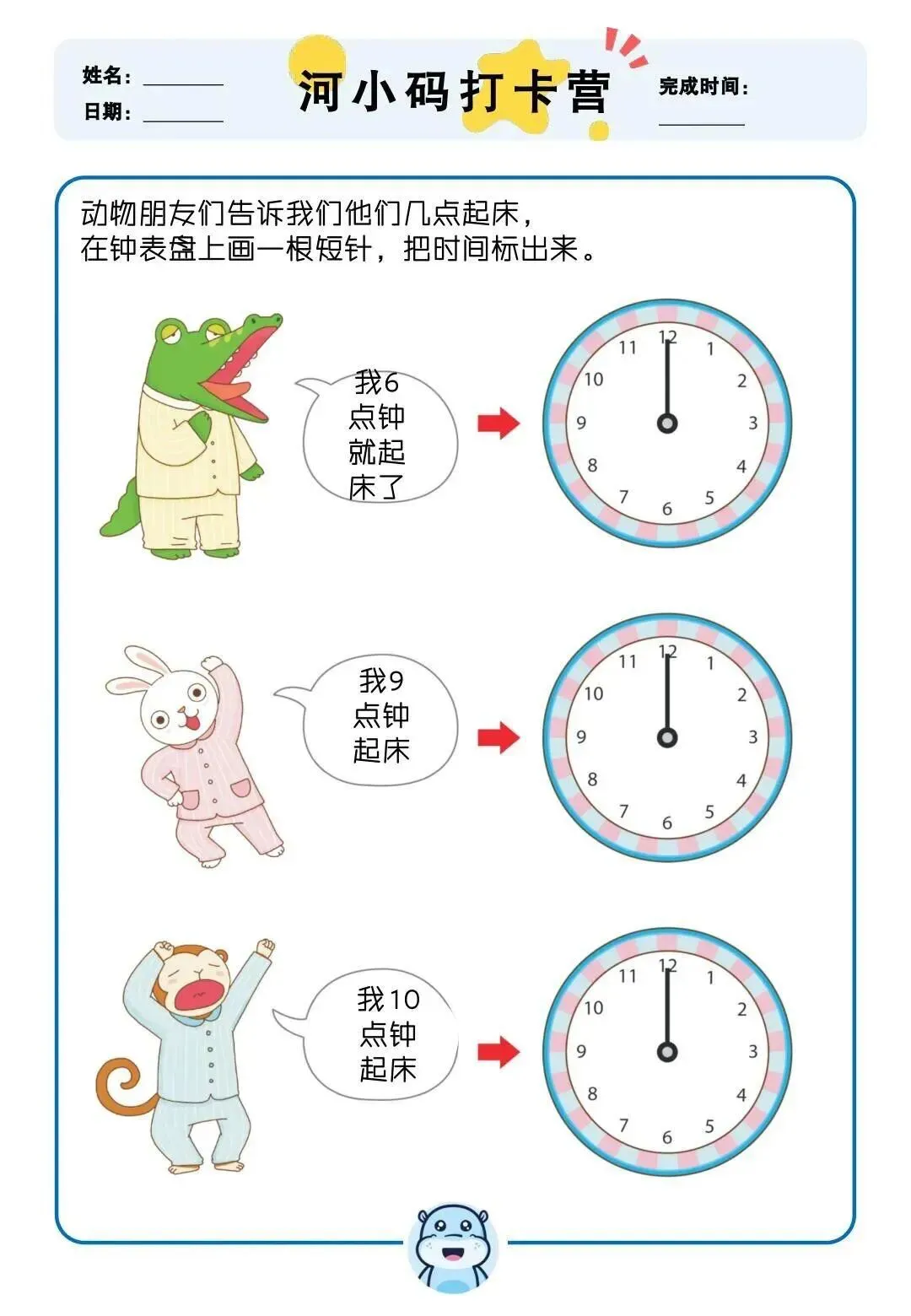 大班幼小衔接《认识时钟》|可打印素材 点击图片长按可直接保存至相册 更多资源请关注以下公众号 -END- |版权说明 本文和配图均来自网络,本平台重在分享优秀教育理念,版权归原作者所有,如有侵权,请后台留言联系删除。