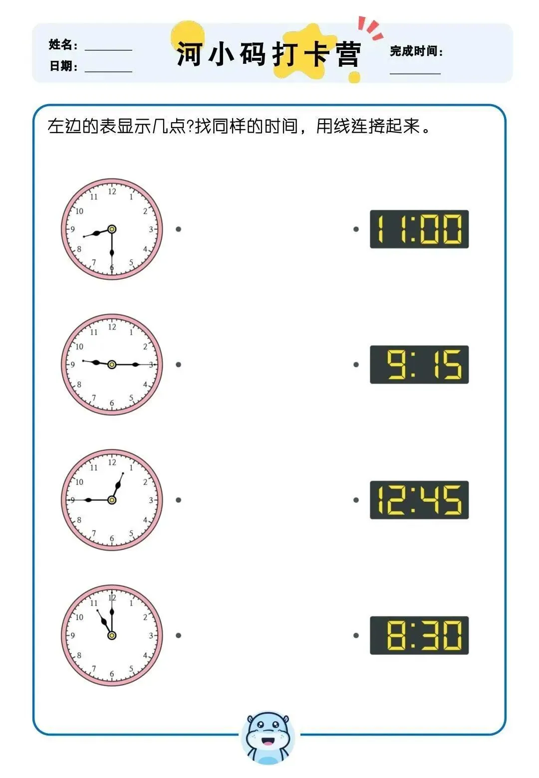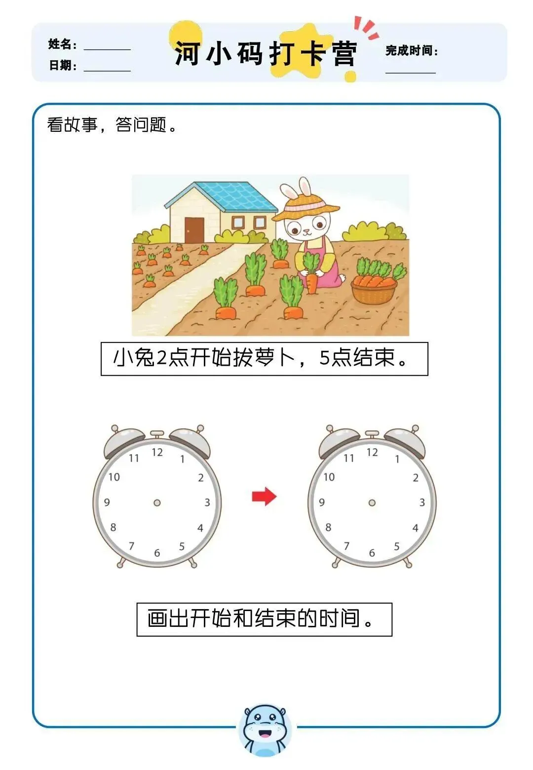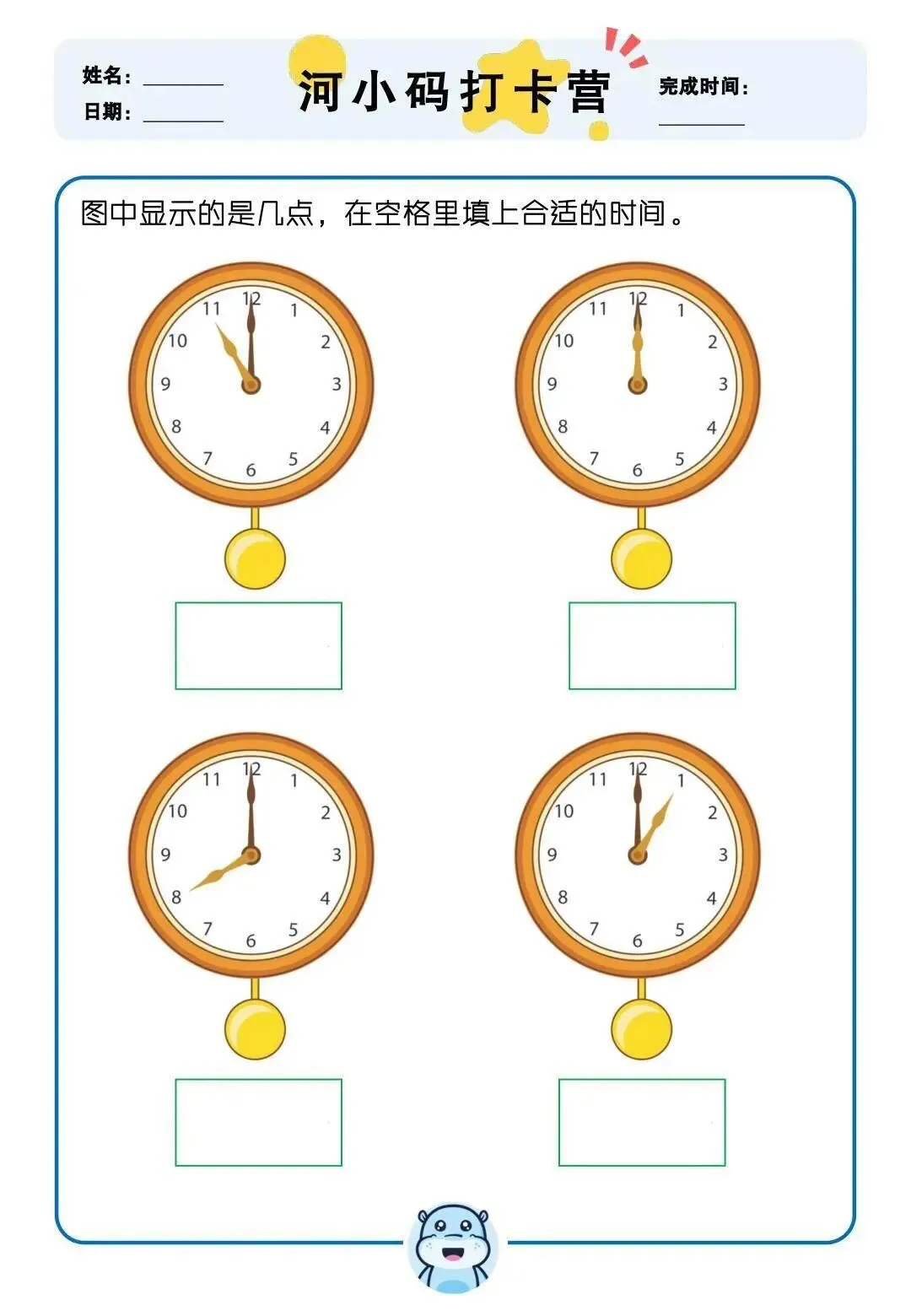 大班幼小衔接《认识时钟》|可打印素材 点击图片长按可直接保存至相册 更多资源请关注以下公众号 -END- |版权说明 本文和配图均来自网络,本平台重在分享优秀教育理念,版权归原作者所有,如有侵权,请后台留言联系删除。