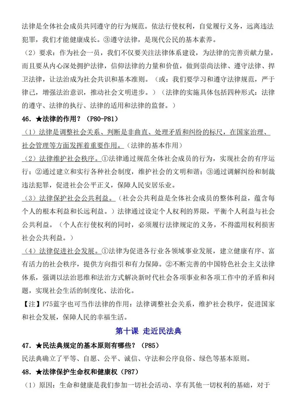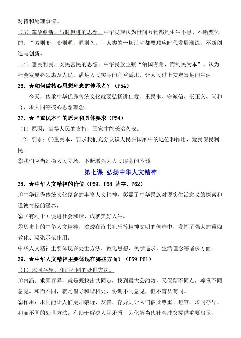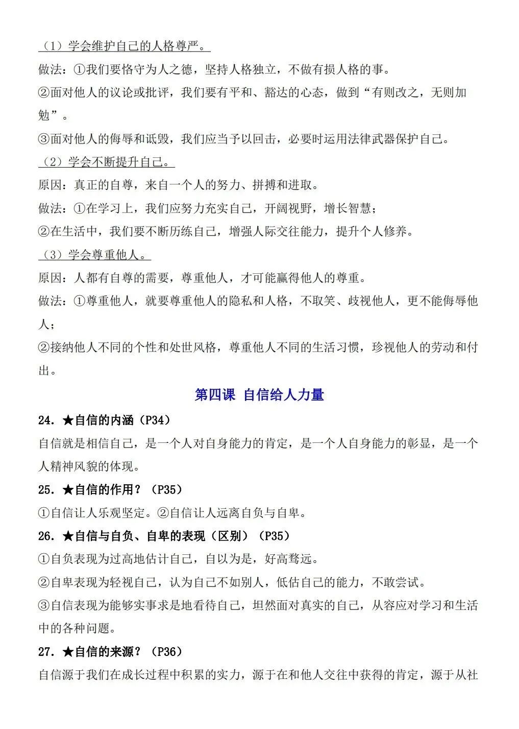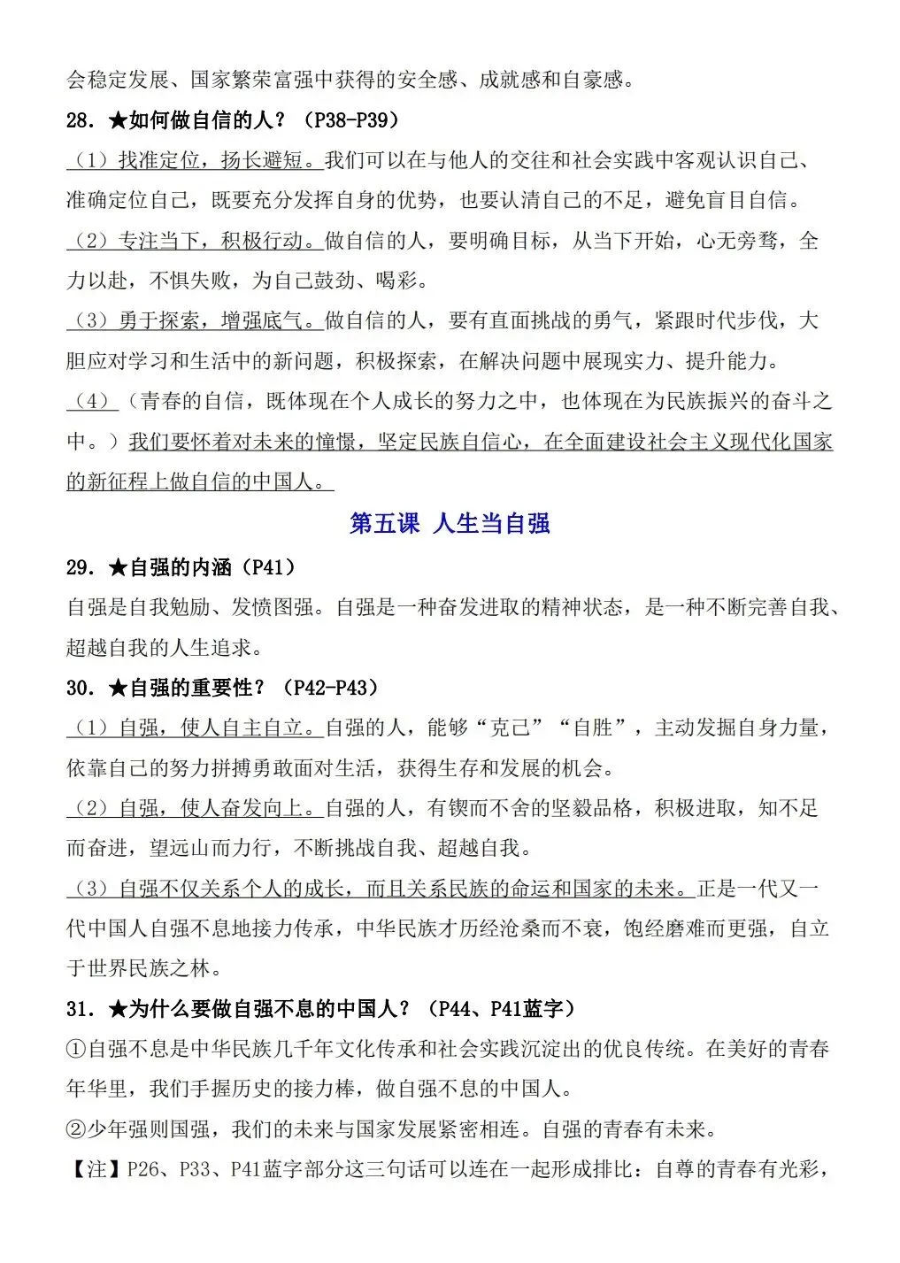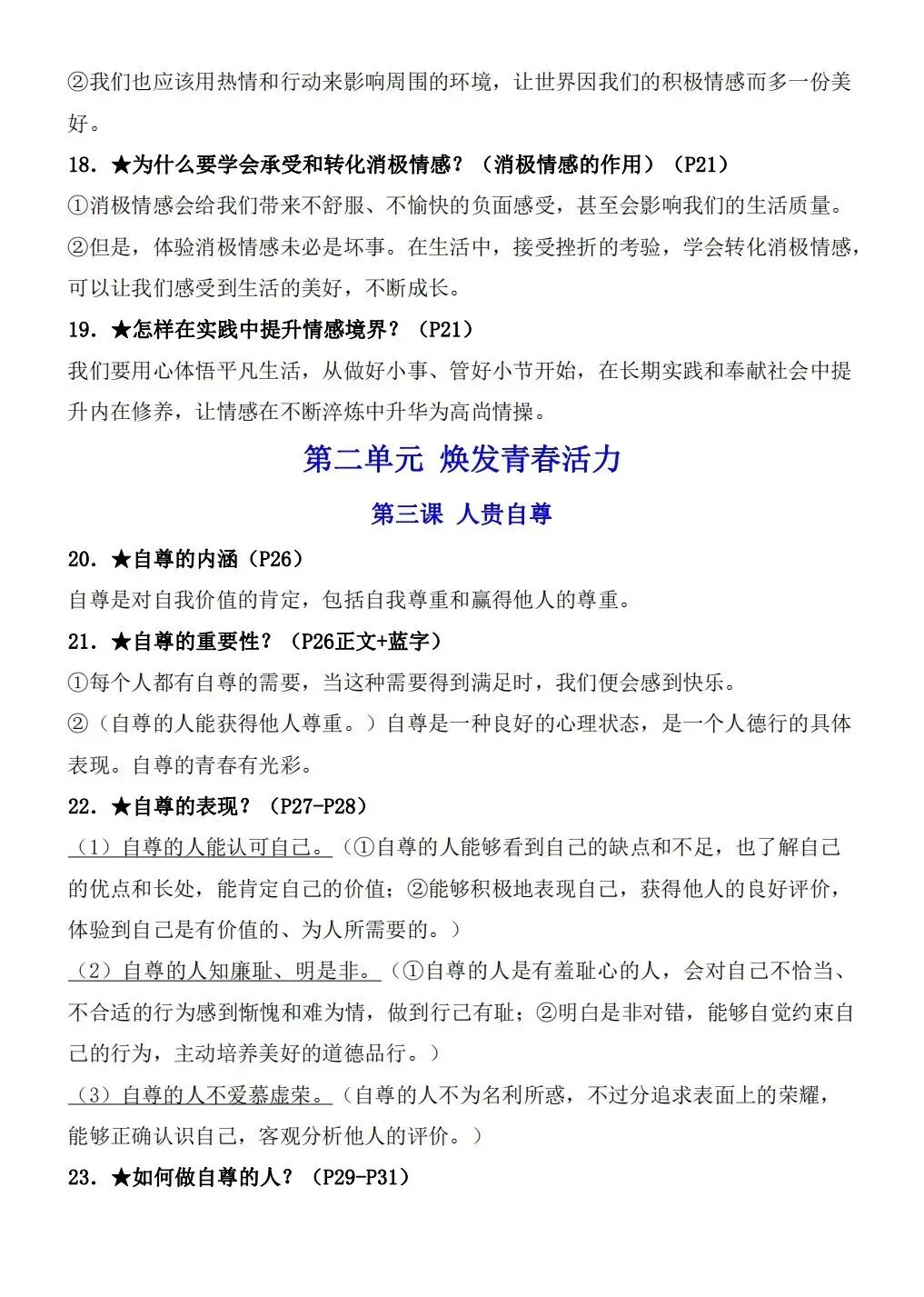 2026版七年级下册道法重点必背59题,可打印电子版!