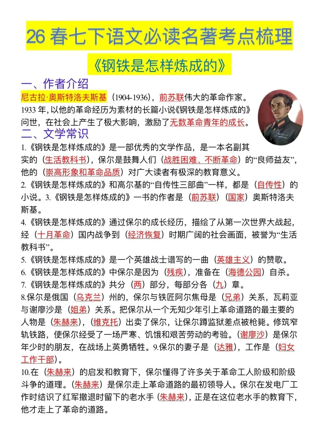 2026版七年级下册语文必读名著考点必备,可打印电子版!