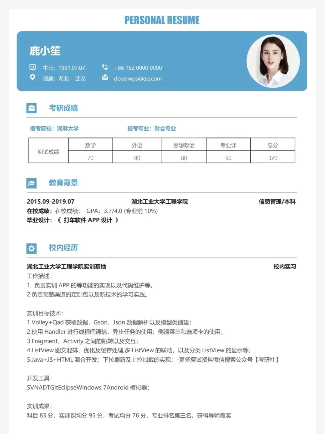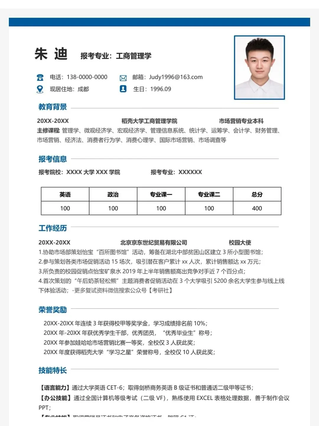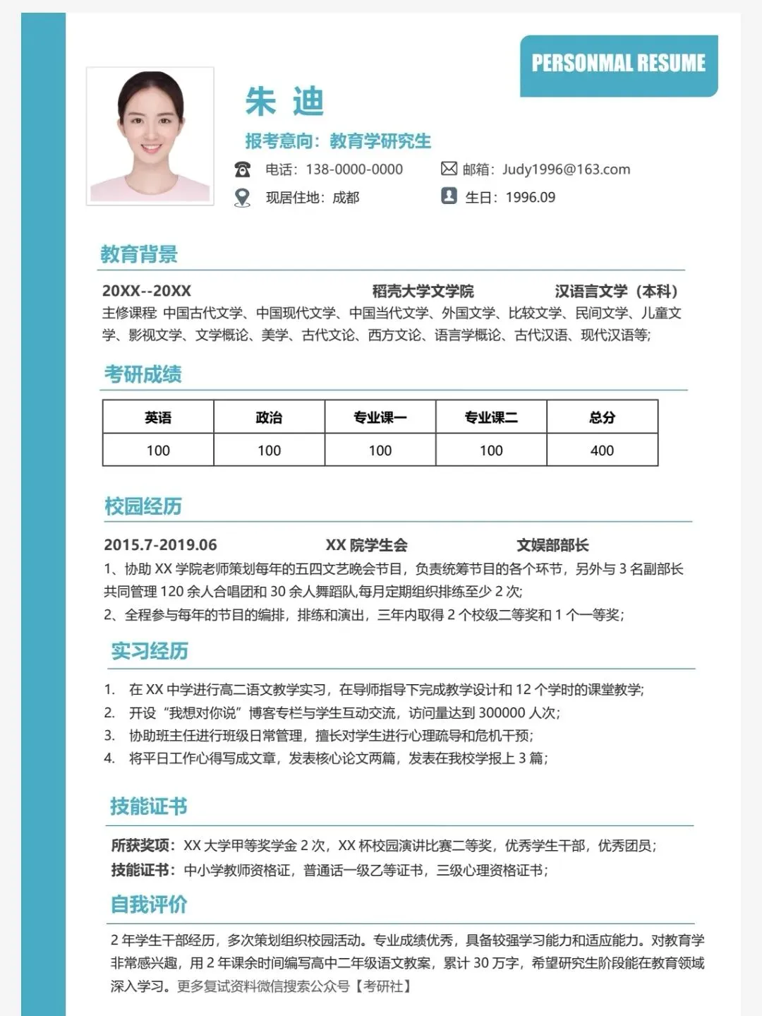 【124套】高质量考研复试简历模板(免费下载)可编辑