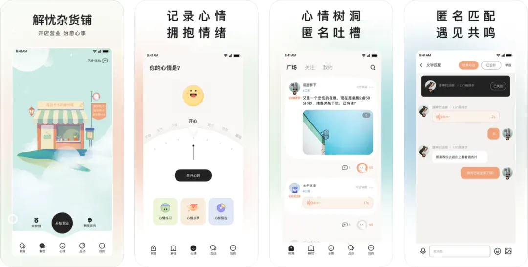 通过情绪练习、向解忧馆投递信件、在树洞匿名吐槽倾诉等等方式,实现自愈。