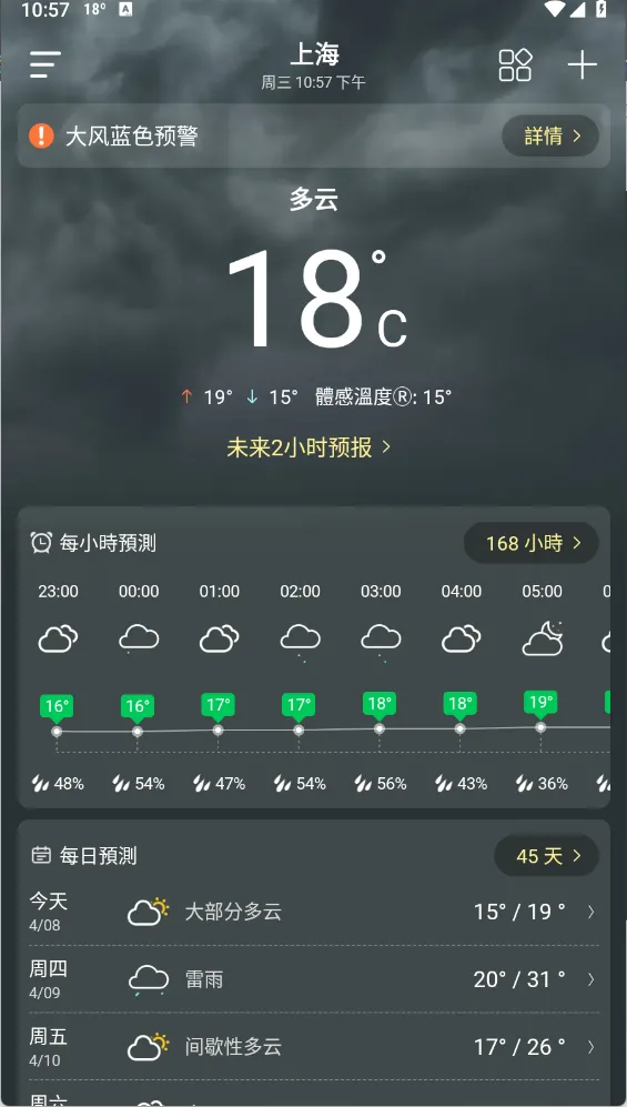 实时天气报告还可以为您提供未来的每小时,每天,每周天气预报…