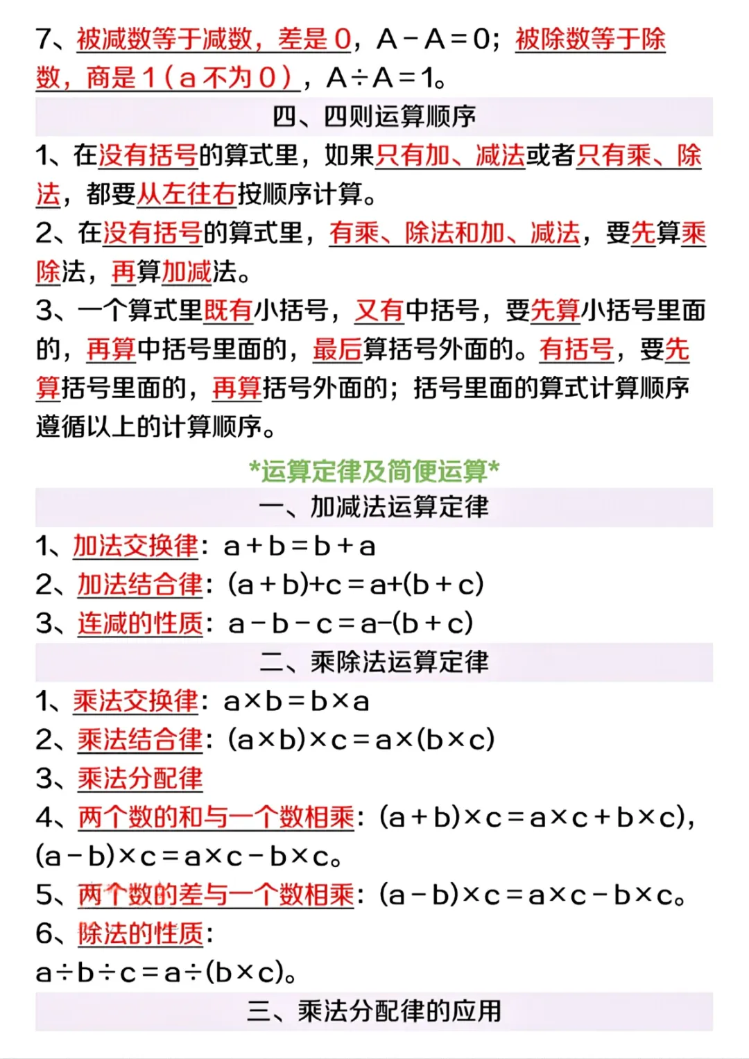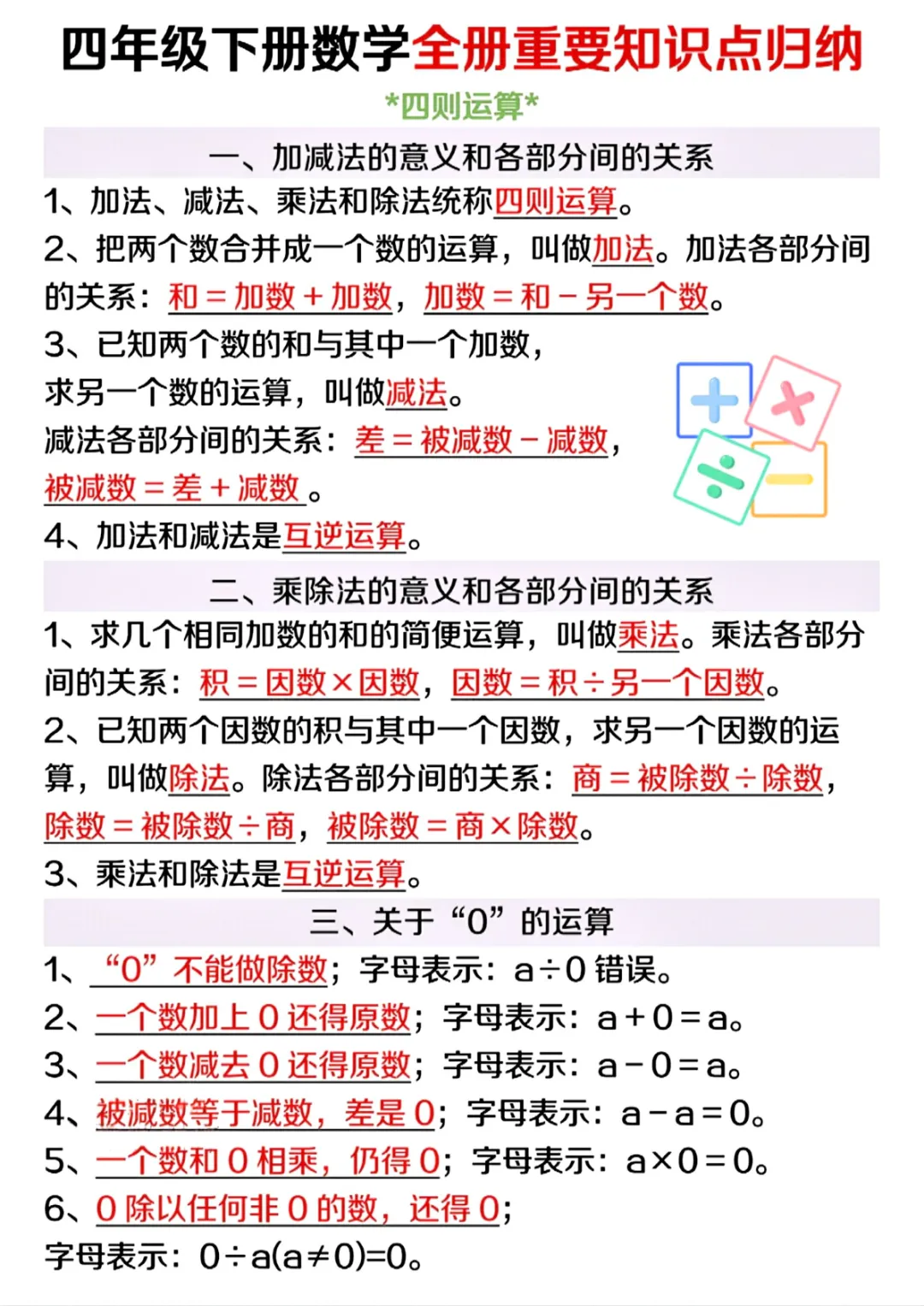 【免费下载】四年级(下)数学 全册重要知识点归纳,PDF电子版,共10页,先保存,以免资源失效
