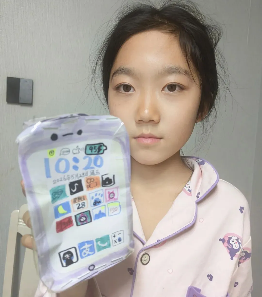 不是真手机,而是她用彩纸、马克笔一点点做出来的手工,认真又可爱,看完真的被治愈了。