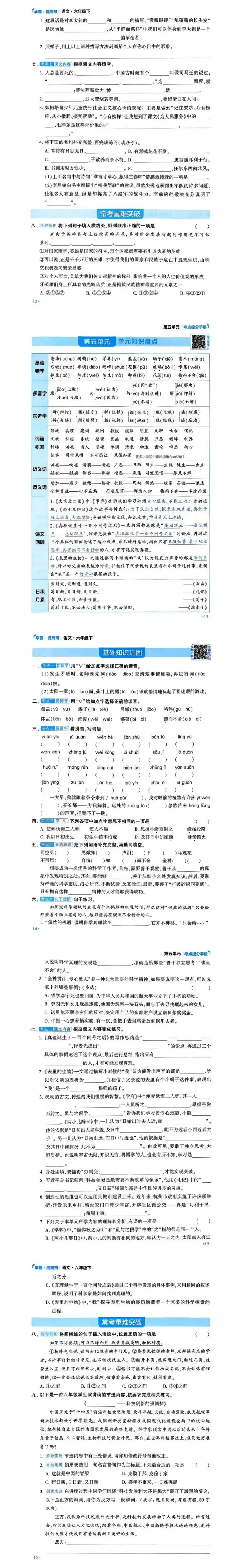 《2026春六年级语文下册单元知识盘点及基础知识巩固》
