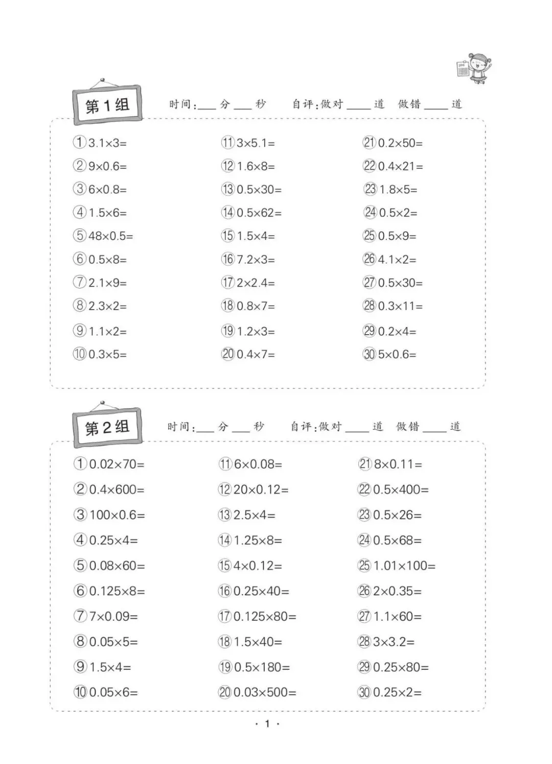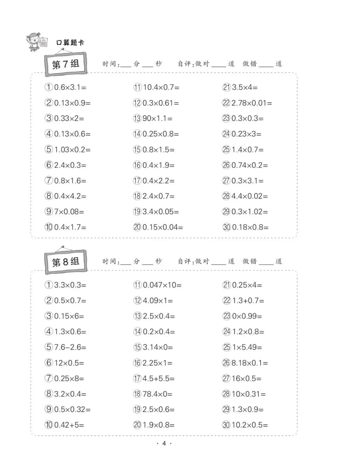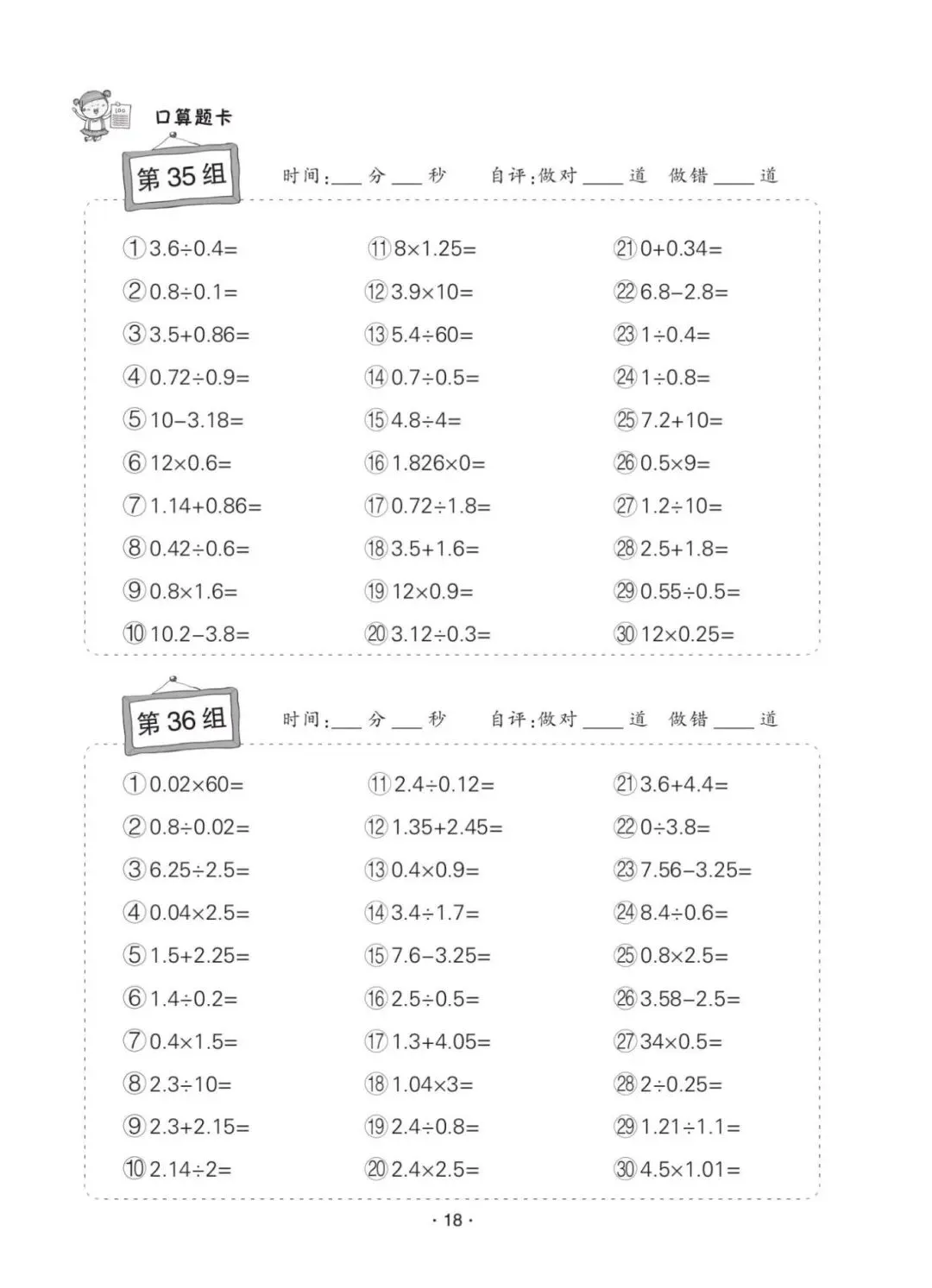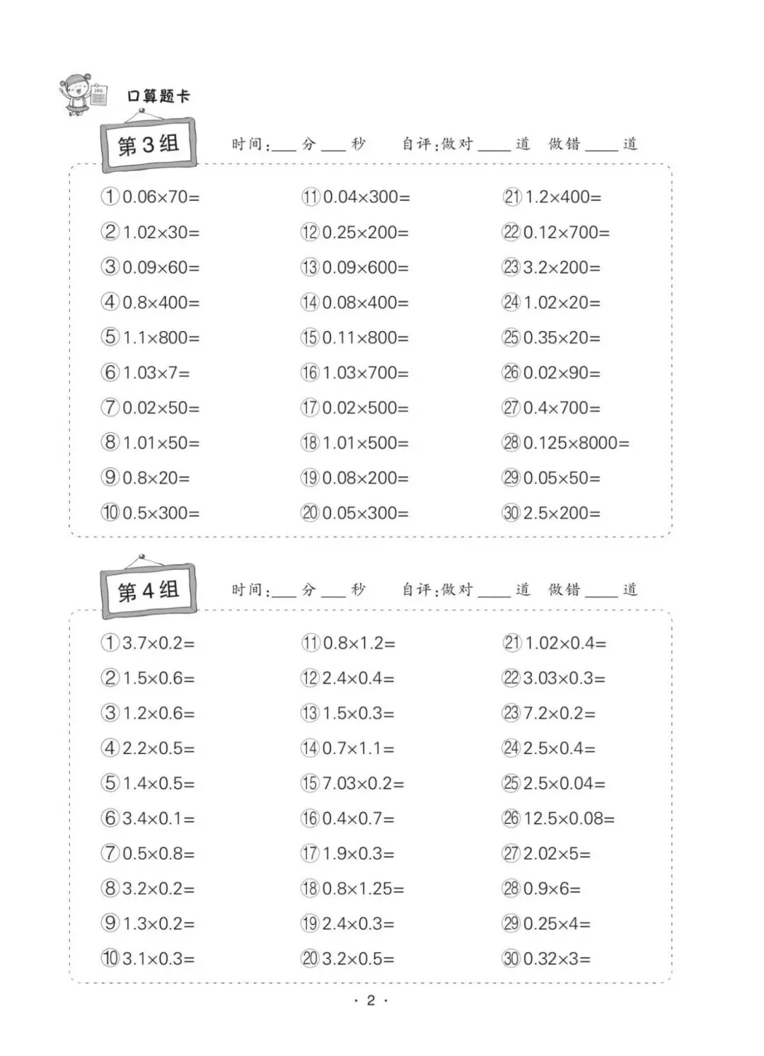 2026春五年级下册数学口算天天练,这份资料题型涵盖小数乘两位数、三位小数乘两位小数、乘法分配律应用及小数混合运算,分类清晰且题量充足,能有效夯实小数运算基础,提升运算技巧与灵活性。家长赶紧给孩子打印出来吧!