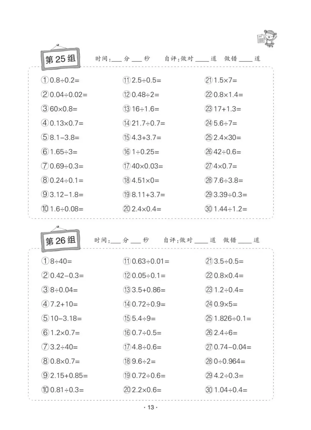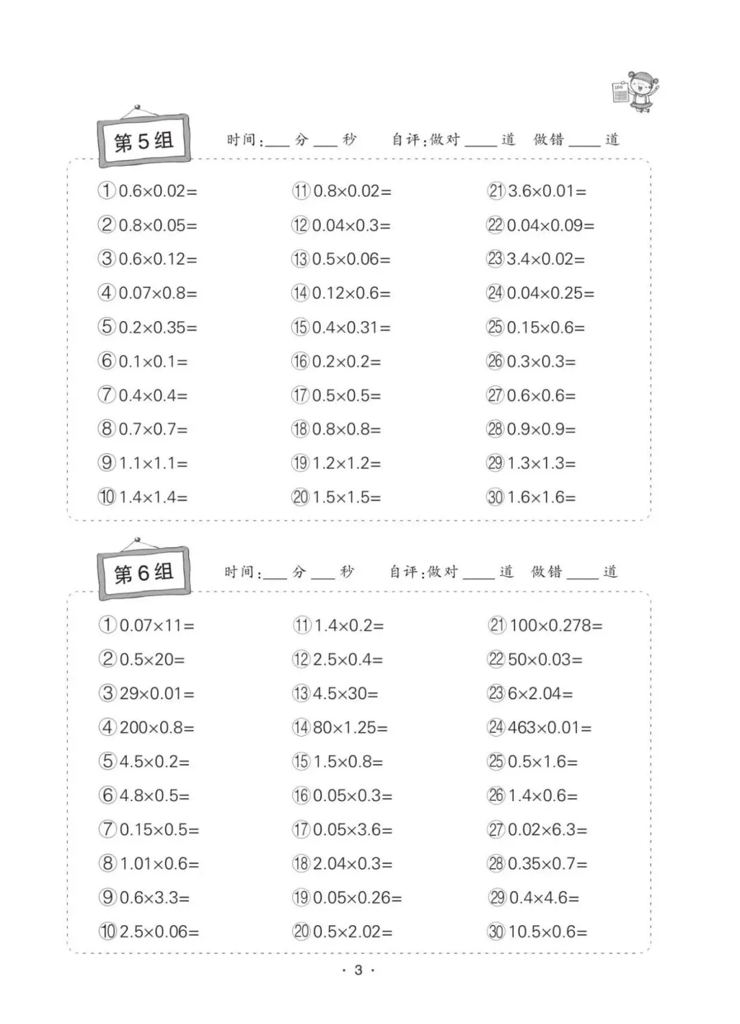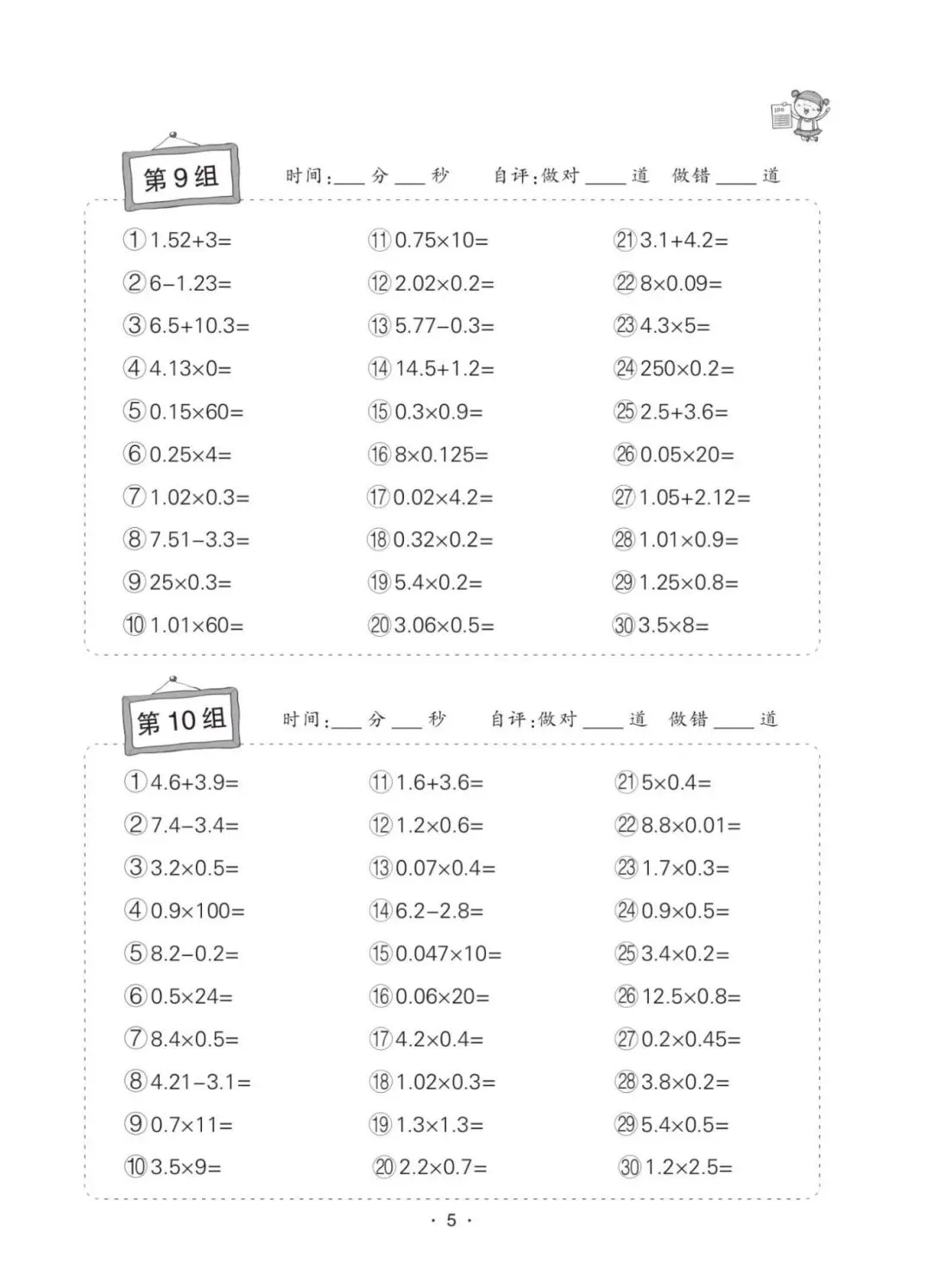 2026春五年级下册数学口算天天练,这份资料题型涵盖小数乘两位数、三位小数乘两位小数、乘法分配律应用及小数混合运算,分类清晰且题量充足,能有效夯实小数运算基础,提升运算技巧与灵活性。家长赶紧给孩子打印出来吧!