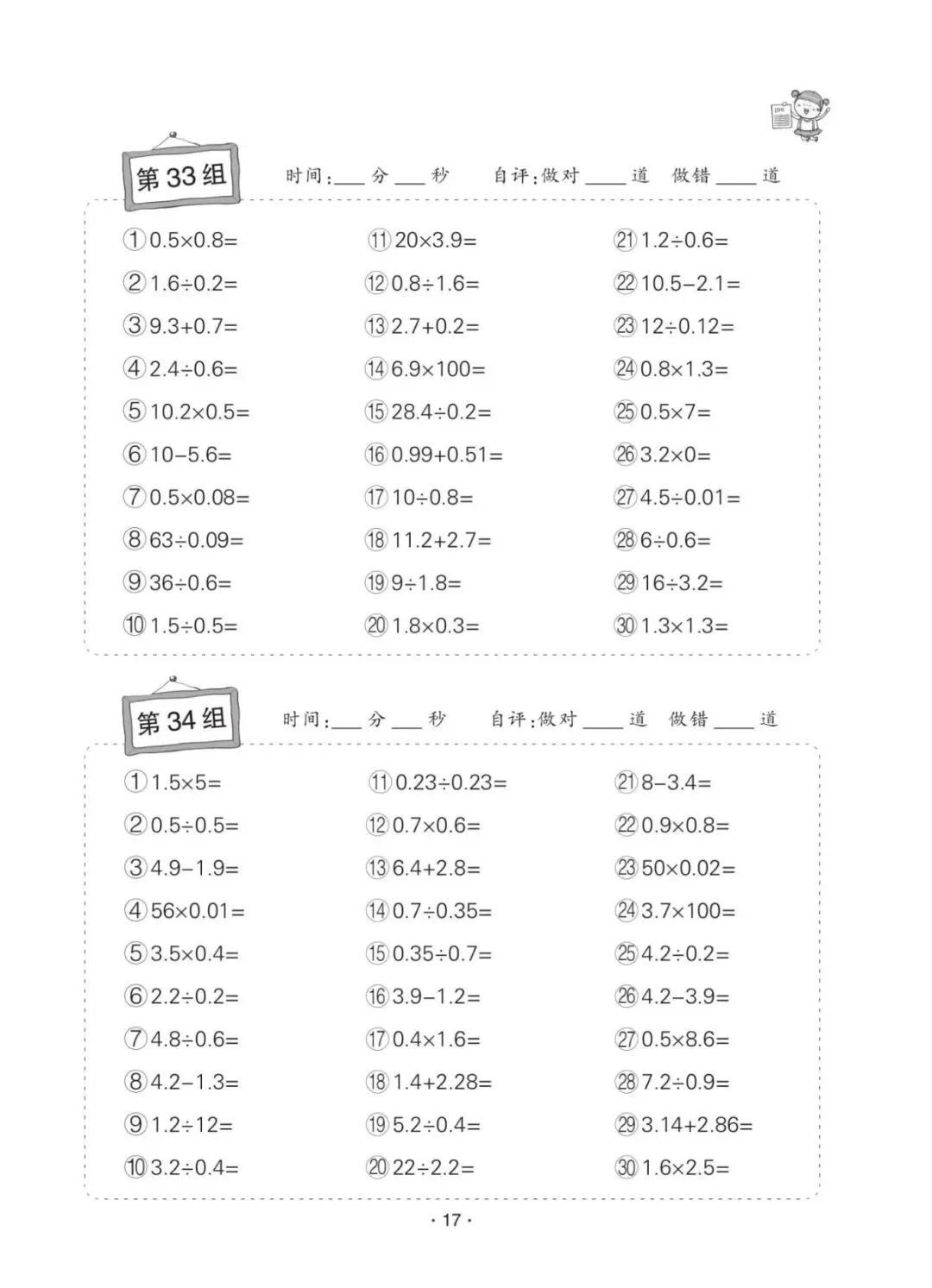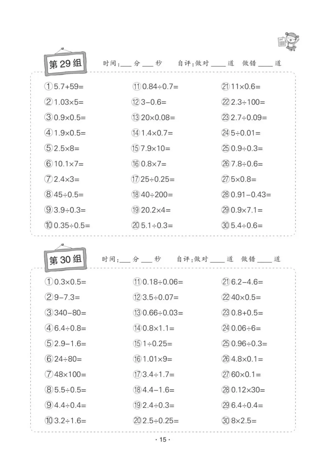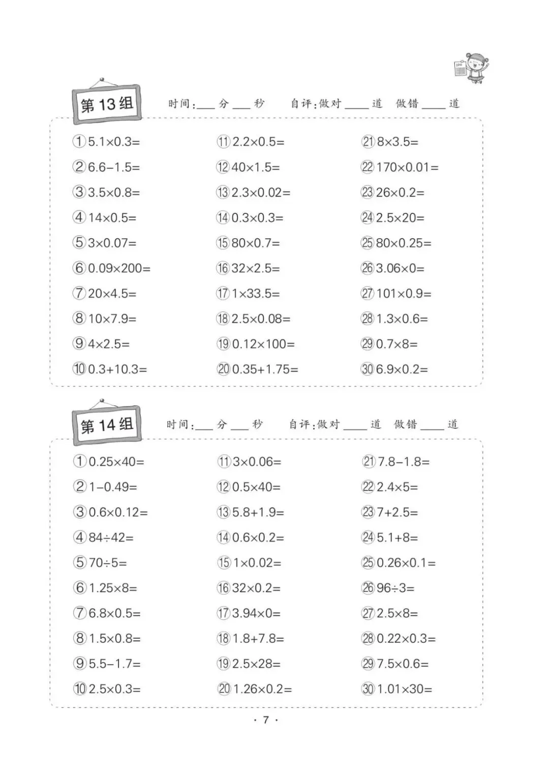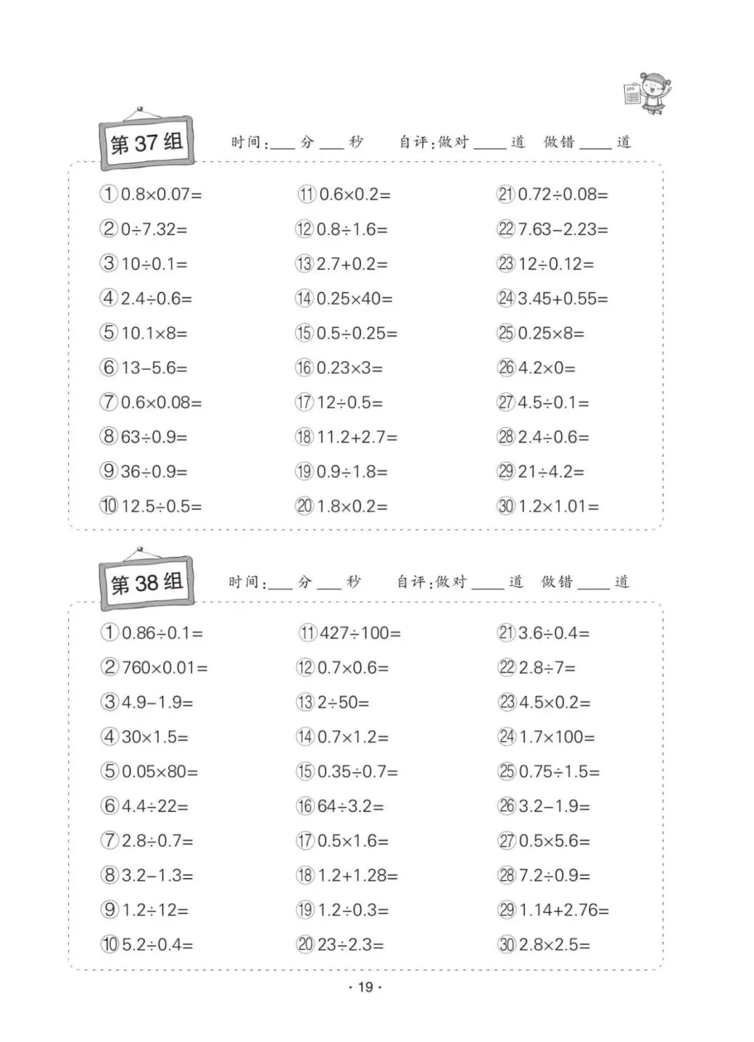 2026春五年级下册数学口算天天练,这份资料题型涵盖小数乘两位数、三位小数乘两位小数、乘法分配律应用及小数混合运算,分类清晰且题量充足,能有效夯实小数运算基础,提升运算技巧与灵活性。家长赶紧给孩子打印出来吧!