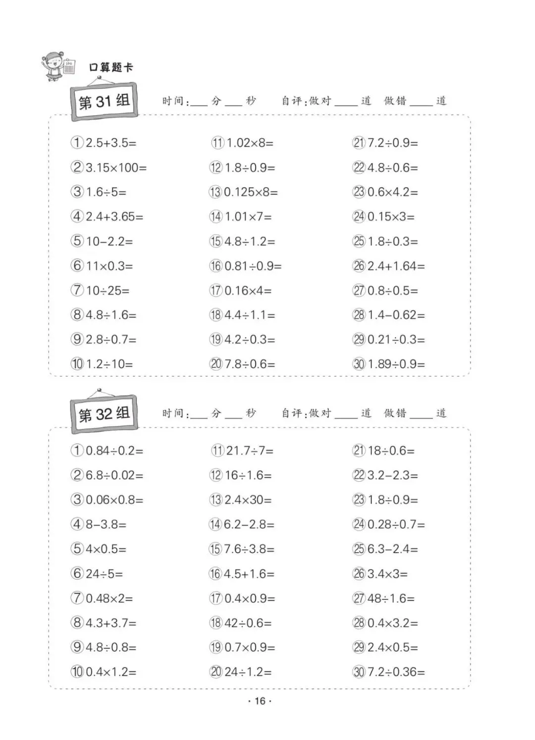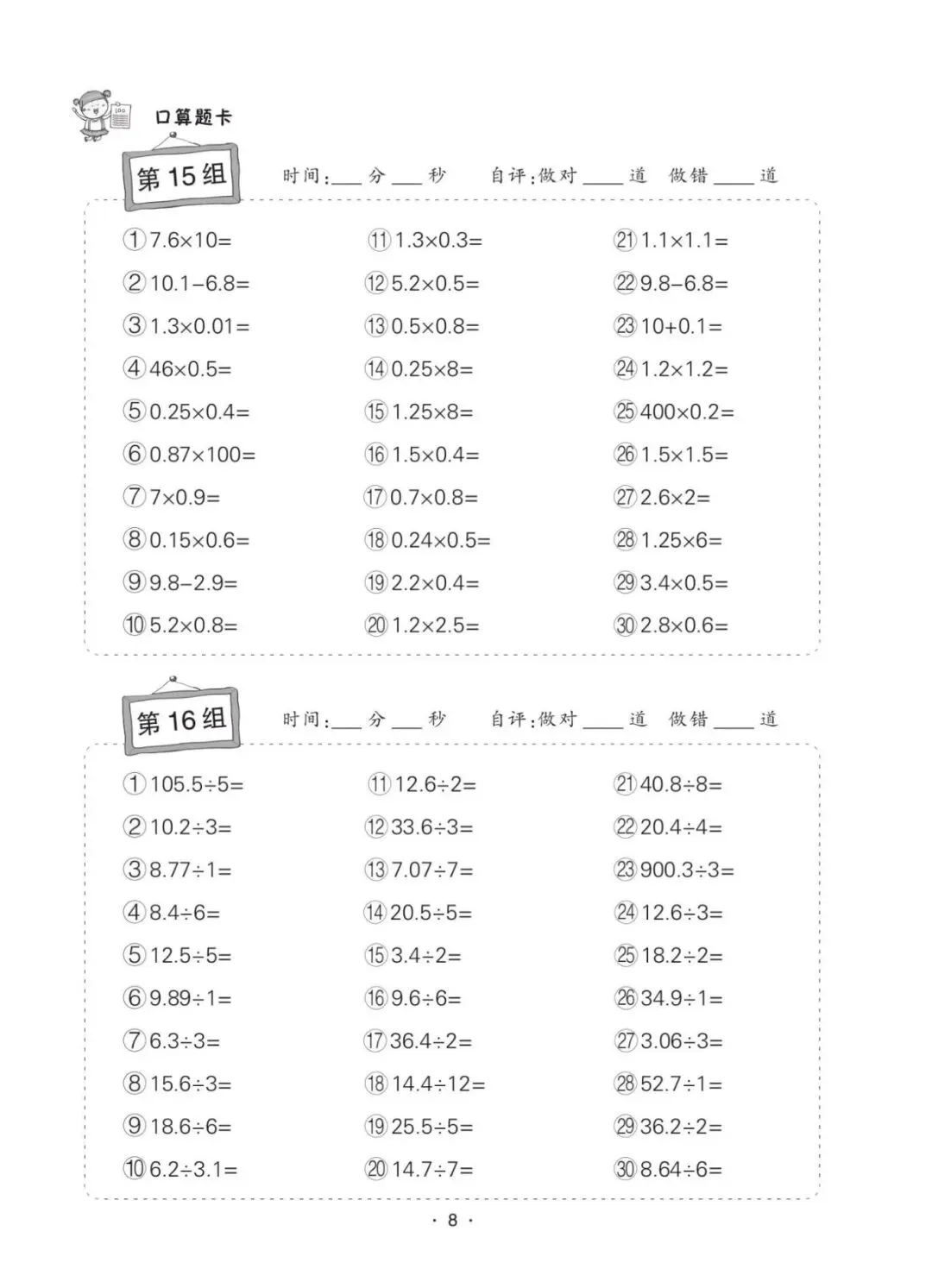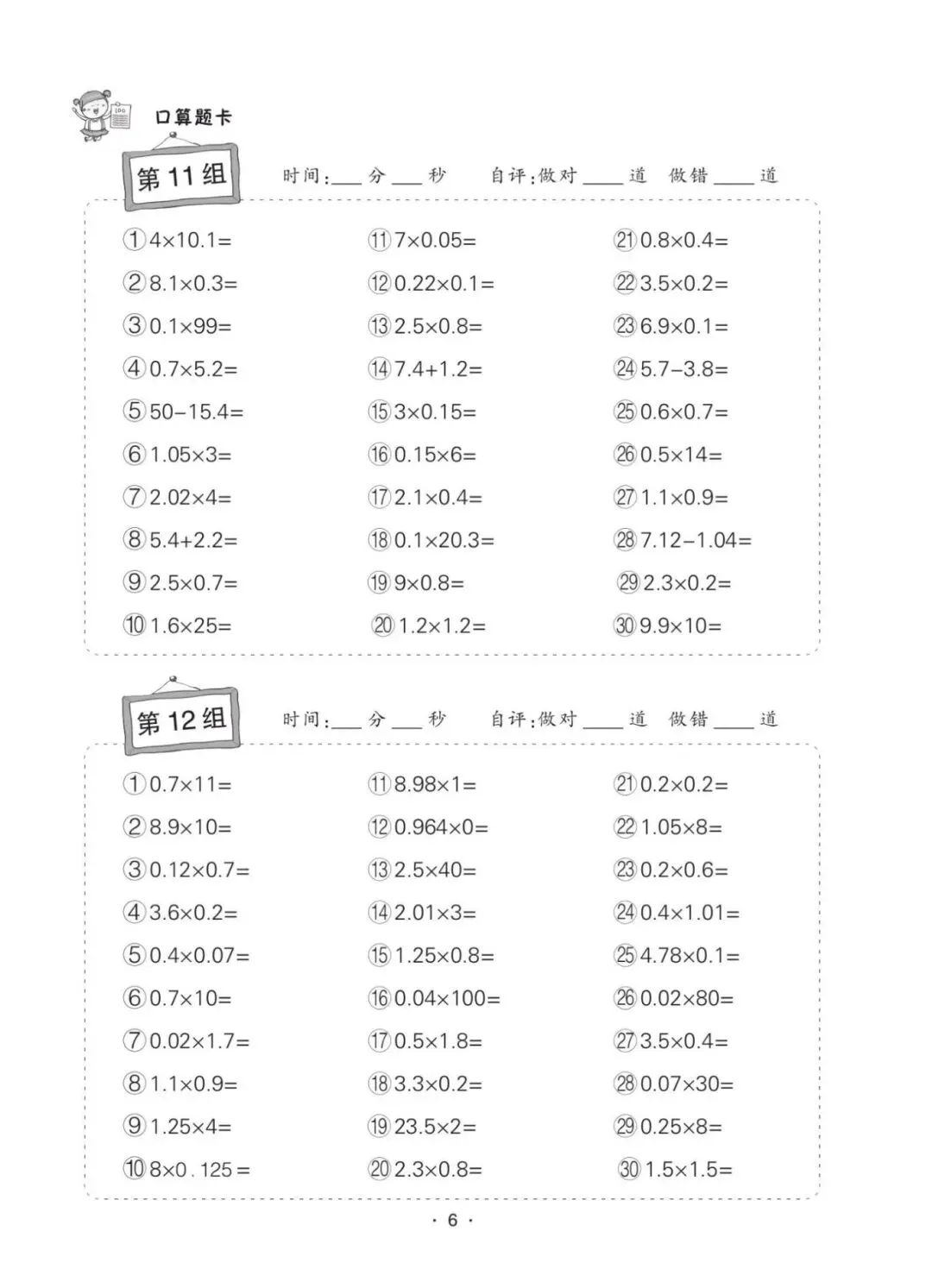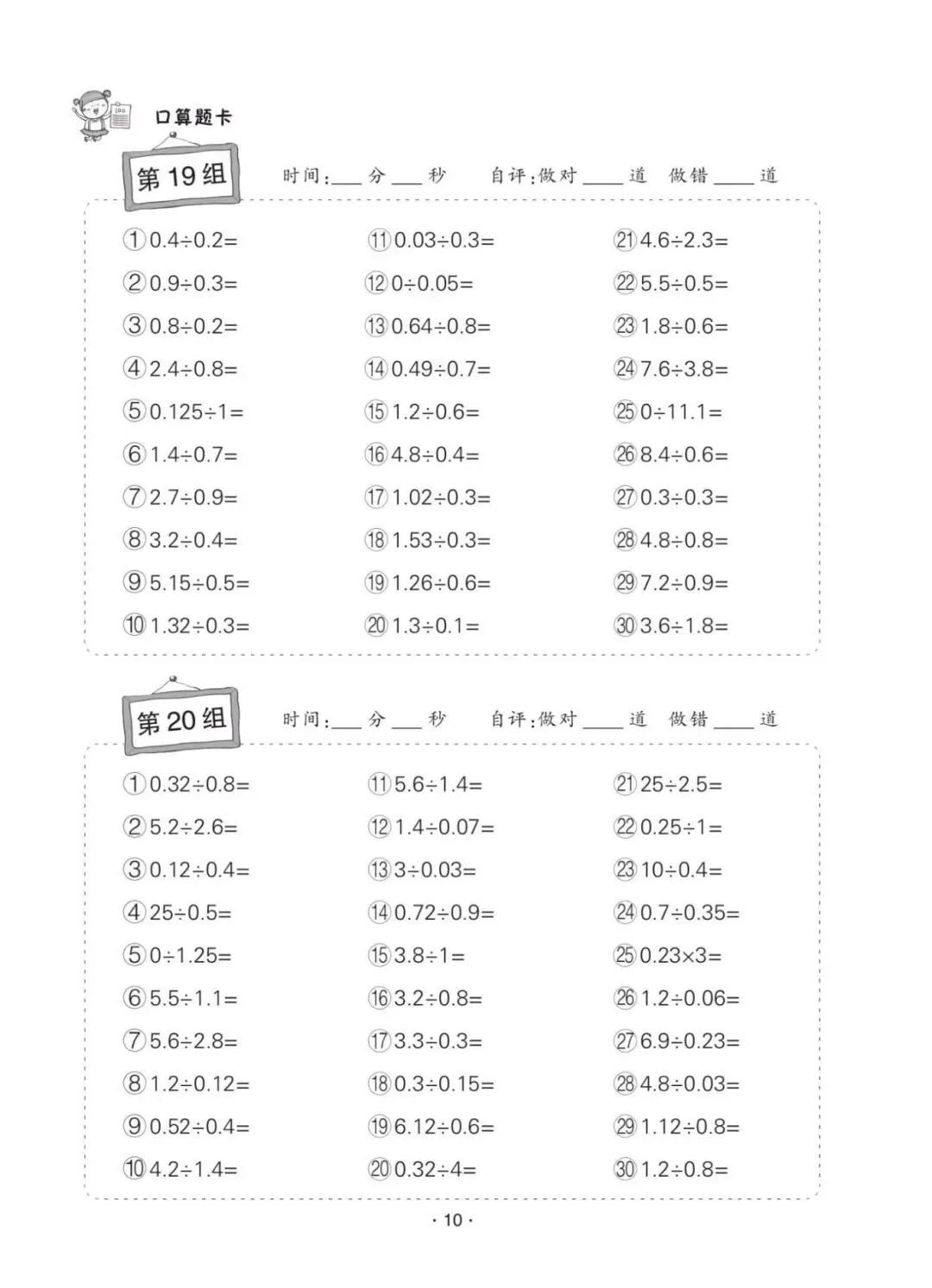 人教版五年级下册数学口算题卡天天练,电子版可下载打印
