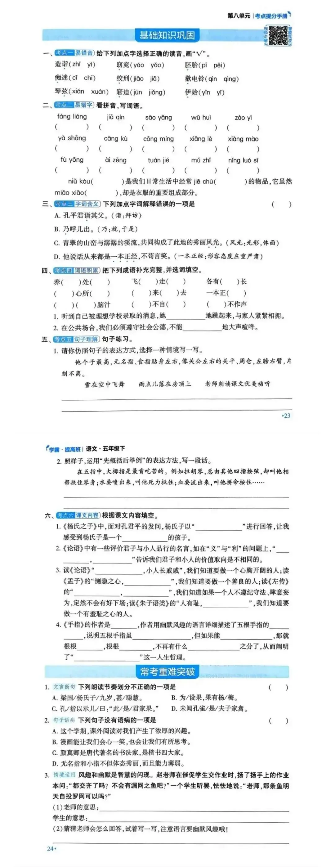 《2026春五年级语文下册单元知识盘点及基础知识巩固》