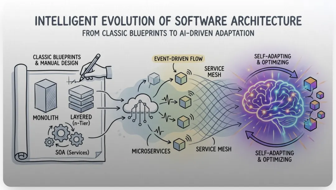 如果说过去的架构演进是人类经验的积累,那么未来则是“机器智慧”的觉醒。AI 正在从辅助开发工具演变为架构的共创者。