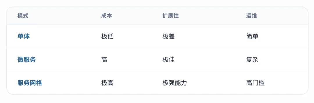 微服务将应用拆解为独立部署的微小单元。它赋予了团队技术栈的选择自由,实现了独立的水平扩展和极强的故障隔离。但代价同样沉重:运维复杂度的指数级增加、CAP定理下的数据一致性挑战,以及不可忽视的网络延迟。