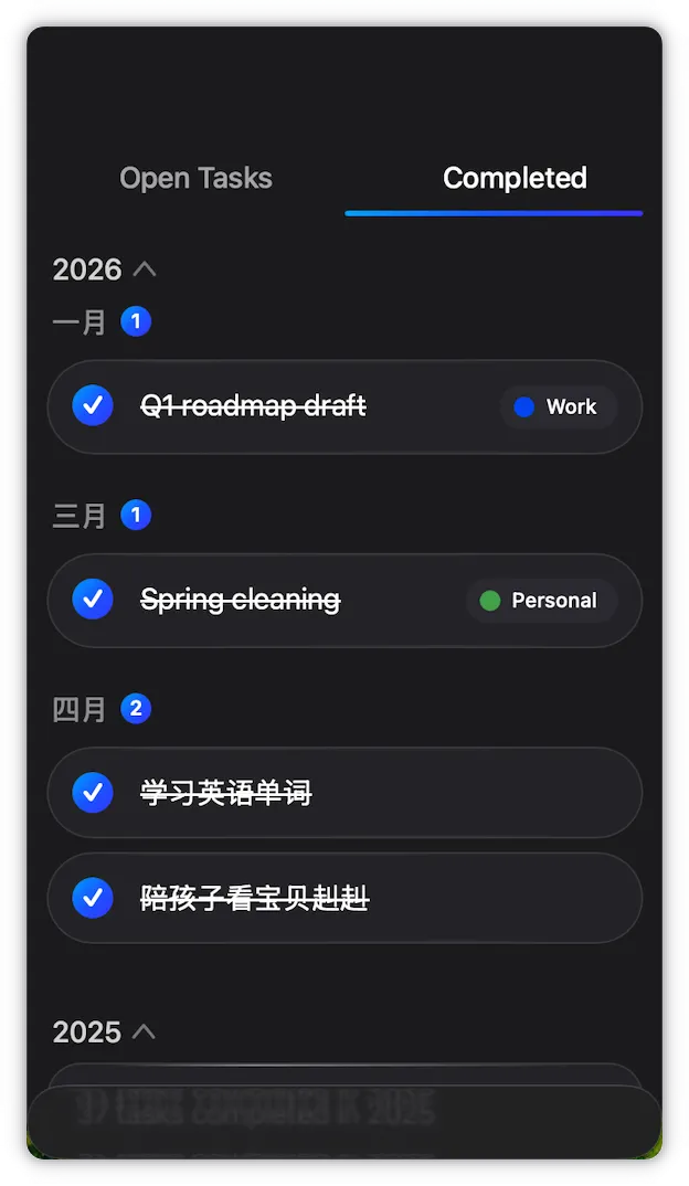 限免来了,苹果手机最高效的待办事项APP 关注公众号艾派得 让你的iOS、iPad、Mac设备更实用 现在的待办事项APP超级多 但是很多APP都违背了高效极简的初衷 功能设置的越来越多,使用操作越发花时间了 今天我给大家分享的这款 Listo 这是一款专为追求效率与简洁生活而设计的待办清单 App 原本需要付费才能下载,今天限时免费中 不过这款APP仅仅支持iPhone手机使用 它能帮助你轻松管理日常任务、追踪事情进度 让你在忙碌生活中保持专注与掌控感,告别杂乱,迎接高效生活 打开后界面非常简约,没有任何广告 只需要在底部添加待办事项即可 点击空白图标就可以设置完成,超级方便 完成的项目可以在完成栏目中查看 还可以放回到未完成的栏目中 你还可以根据自己的每天生活工作习惯设置标签 你可以定期复盘自己的待办事项完成情况 每天,每周,每月,每年 虽然这款APP没有中文界面 但是不懂英文的用户也可以轻松上手 因为功能和界面非常极简,支持中文输入待办内容 如果你手机缺这样一款高效APP 这款限时免费的极简待办事项软件值得入手 软件下载 长按下方二维码即可跳转下载 看在小派认真的份上、是不是应该点个👍