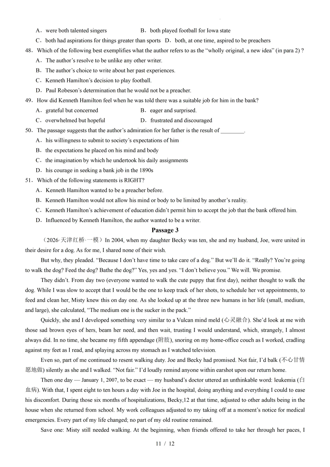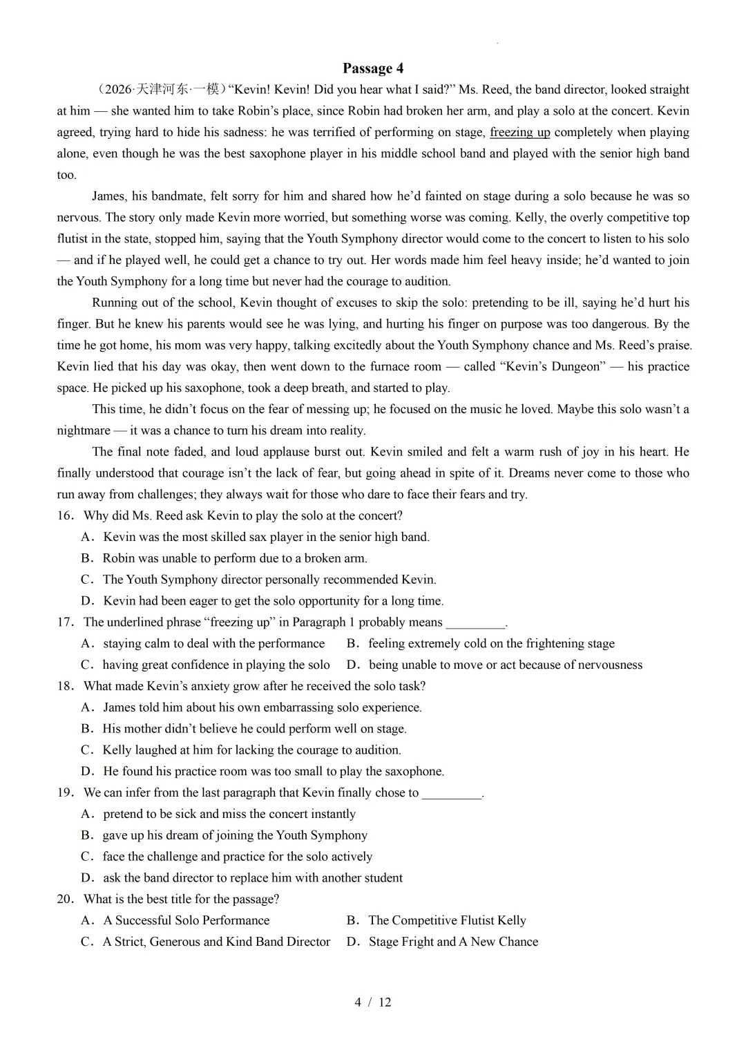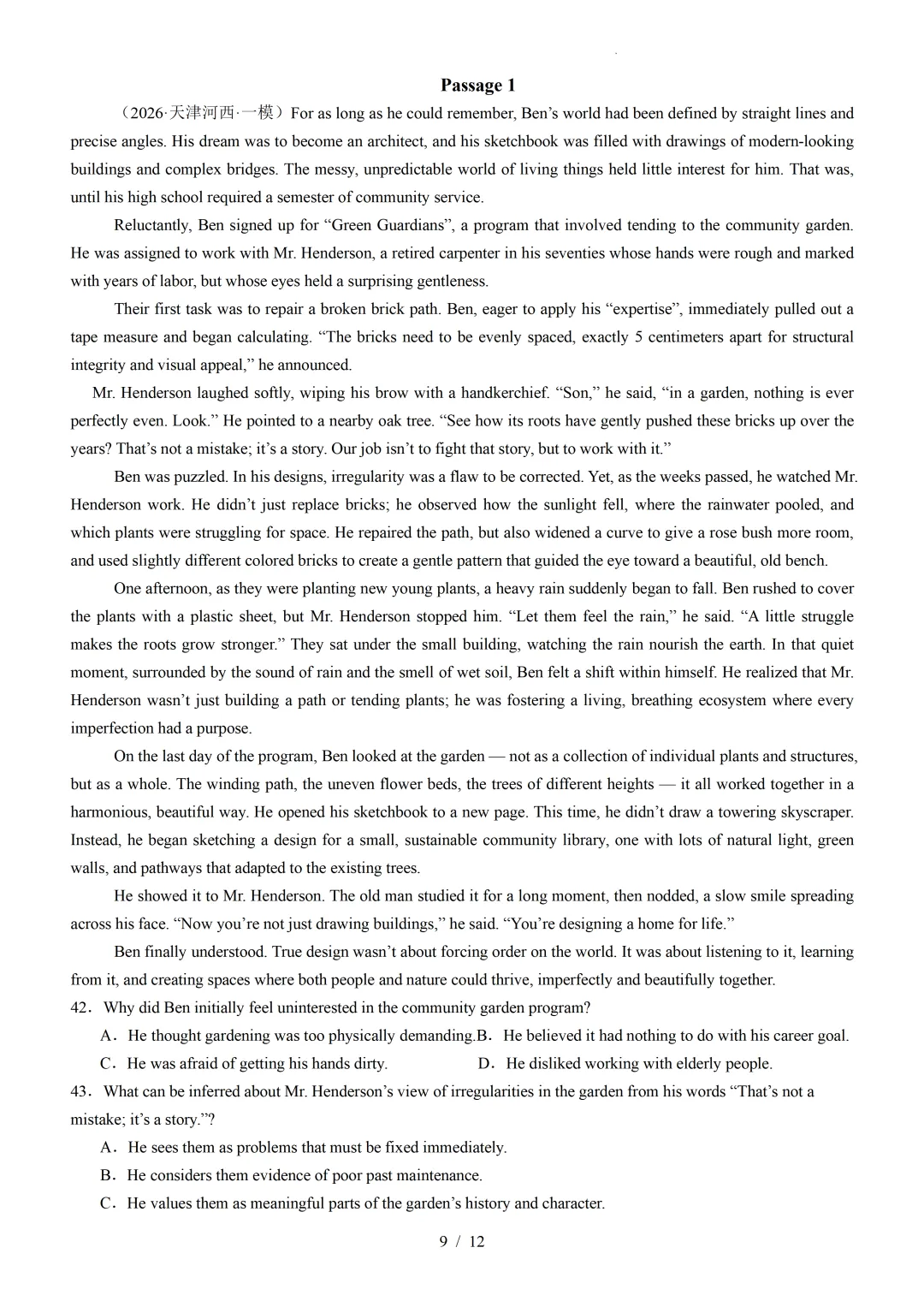 【可下载】2026年高考英语一模分类汇编04+阅读理解记叙文(天津专用)(附解析和答案) 点击上方“蓝字”免费关注! 本套试卷+答案解析下载入口 关注“卿卿侃古今”公众号 点击左下角阅读原文可下载 相关链接: 2007-2025年天津市高考英语真题汇总(持续更新中~) 2011-2023年天津高考英语听力真题在线测试 【高考英语听力在线测试】高考听力机考模拟试题大全(持续更新中) 【可下载】2025-2026年高中英语试题汇总(附解析)【持续更新中】 【汇总】高中英语月考和期中期末试题(持续更新中~) 【题库】高一英语试题汇编(持续更新中~) 【题库】高二英语试题汇编(持续更新中~) 【题库】高三英语试题汇编(持续更新中~) 【可下载】高三英语上学期期末试题16套(附解析) 【可下载】高二英语上学期期末试题10套(附解析) 【可下载】高一英语上学期期末试题汇9套(附解析) 【可下载】2025-2026学年度高一高二高三开学考试模拟试卷(天津专用)(附解析) 新外研版高中英语高清电子课本、课文原文和译文、单元同步复习资料和试题【持续更新中】 【目录1】高中英语阅读理解限时训练大全(持续更新中~) 【目录2】高中英语完形填空限时训练大全(持续更新中~) 【目录3】高中英语书面表达大全(持续更新中~) 【目录4】高中英语听力训练大全(持续更新中~) 【目录5】高中英语单选题大全(持续更新中~) 【目录6】高中英语语法题大全(持续更新中~) 【目录7】高中英语阅读表达题大全(持续更新中~) 【目录8】科普知识汇总 【目录9】中高考学法知识汇总 【目录10】高考英语真题+名校模拟真题+月考和期中期末试题(持续更新中~) 【目录11】暑期高考英语备考资料大全持续更新中~【汇总】中高考志愿填报资料大全 【汇总】高中英语月考和期中期末试题(持续更新中~) 【汇总】2025届高三英语一模试题(附解析) 【汇总】2024届高三英语一模二模三模试题(附解析) 【汇总】2024届高考英语押题卷(附解析) 【汇总】2025届高三英语周考综合练(附解析) 【题库】高三英语限时训练(持续更新中~) 【模拟】2025届高三英语听力机考模拟试题在线测试 【高考词汇】(新)外研版高中英语全七册词汇表(附音频) 【中考词汇】初中英语外研版必备单词表(完整版),可打印 建议收藏保存 点击阅读原文查更多