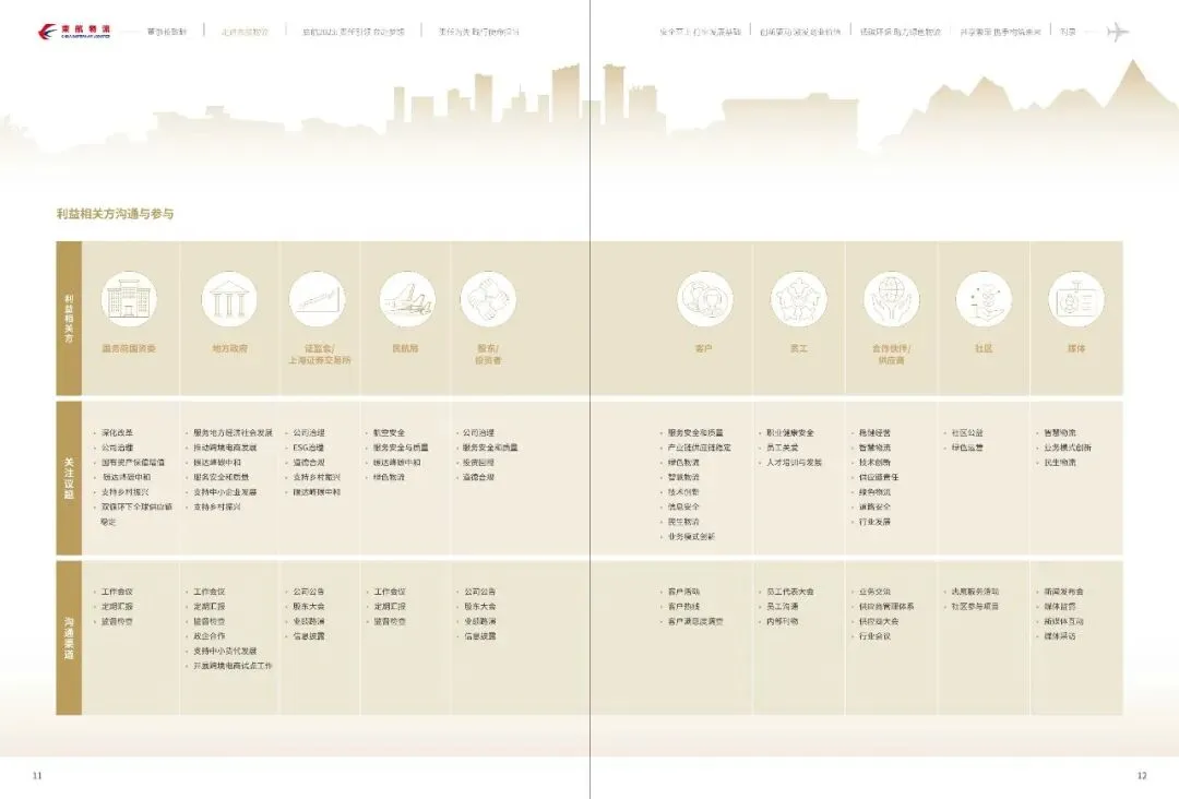 作为国内航空物流板块首家上市企业,我们积极回应资本市场在环境、社会及治理(ESG)方面日益严格的期待和要求,发挥自身专业优势创造经济社会环境多重价值。