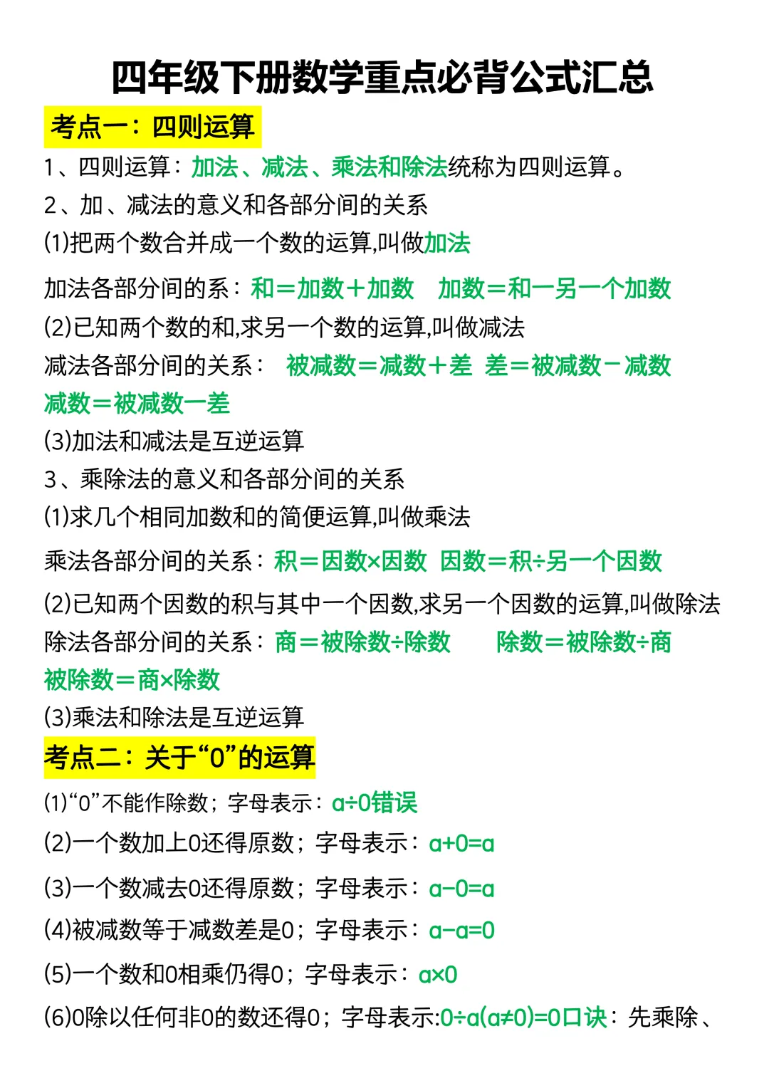 四年级下册数学:重点必背公式汇总,电子版可打印 家长们,↑关↑我领资料 今天老师分享《四年级下册数学:重点必背公式汇总》精选资料给家长,下载电子版打印给孩子记背练习! 提示:文末有完整电子版下载方式 (因篇幅有限,仅显示部分内容) 先加老师好友,方便接收完整资料 若已是好友(同头像),就不要重复加!(家长多,若没及时回复,请耐心等待) 每天150位+家长在领取!