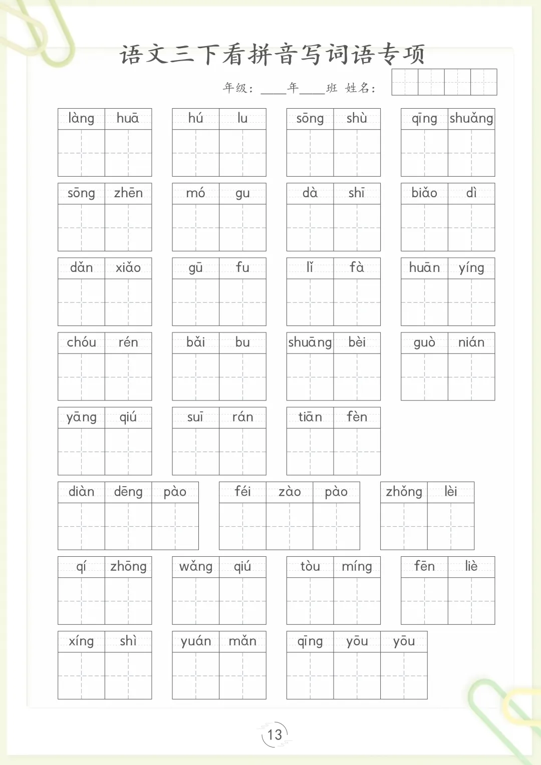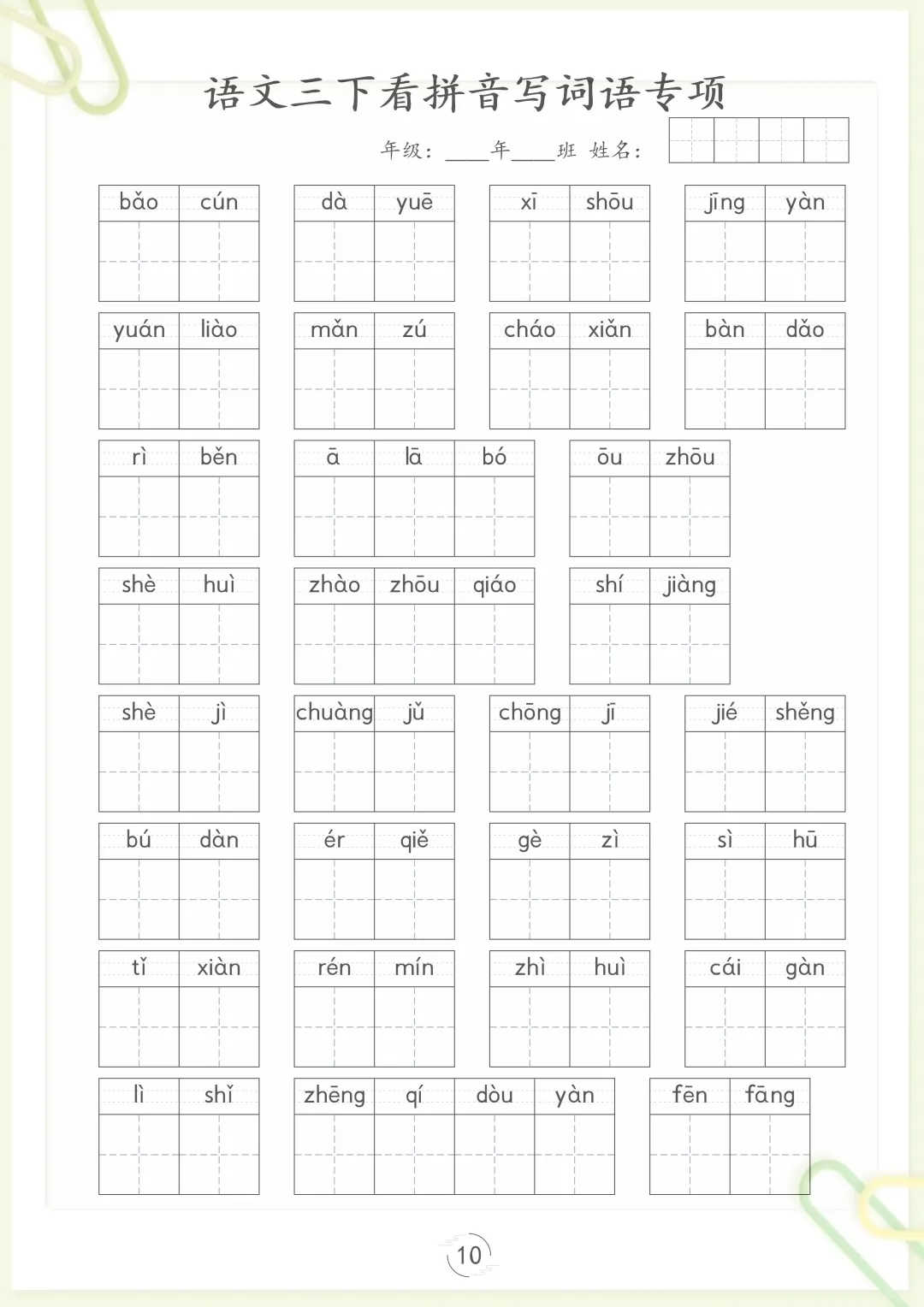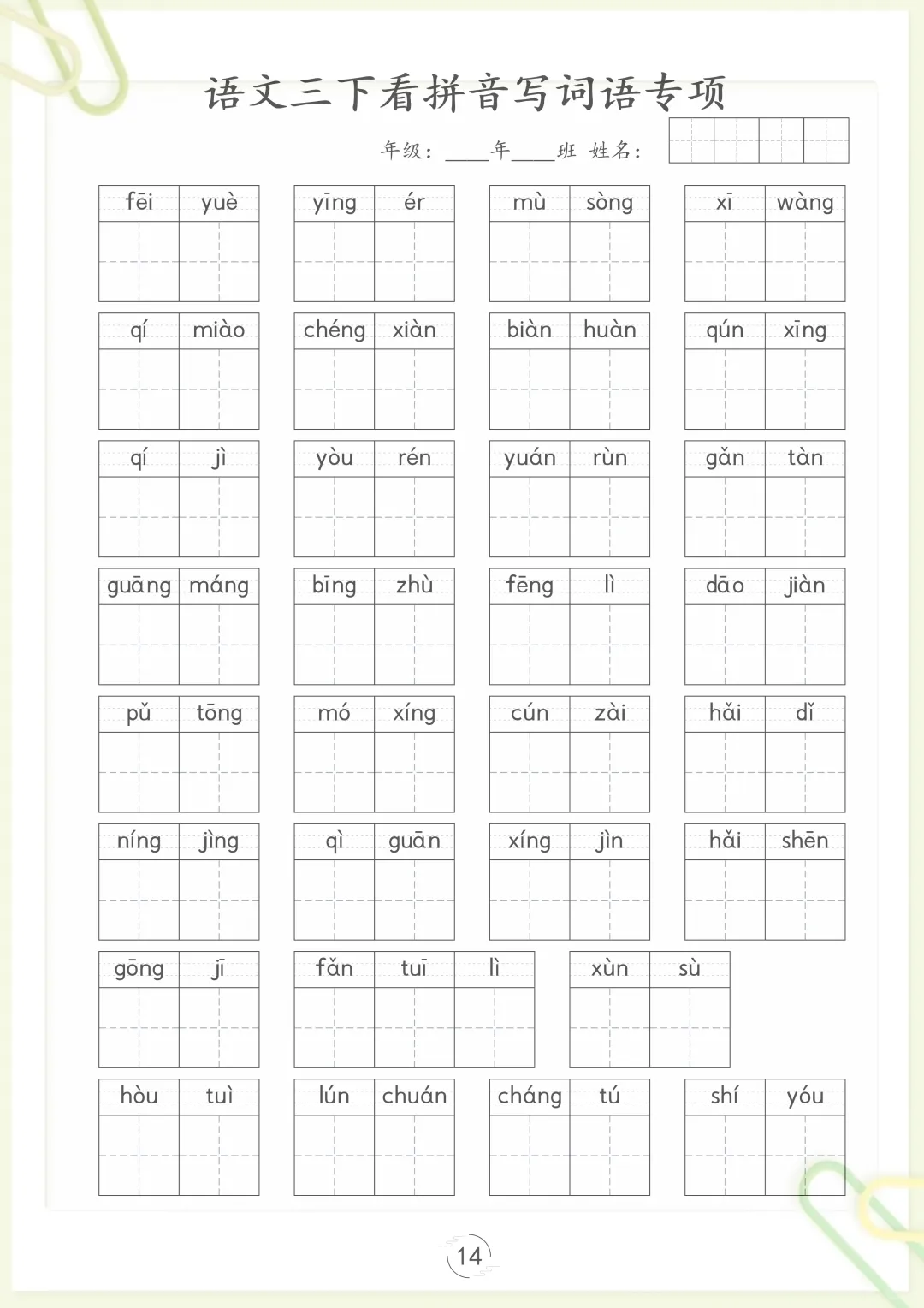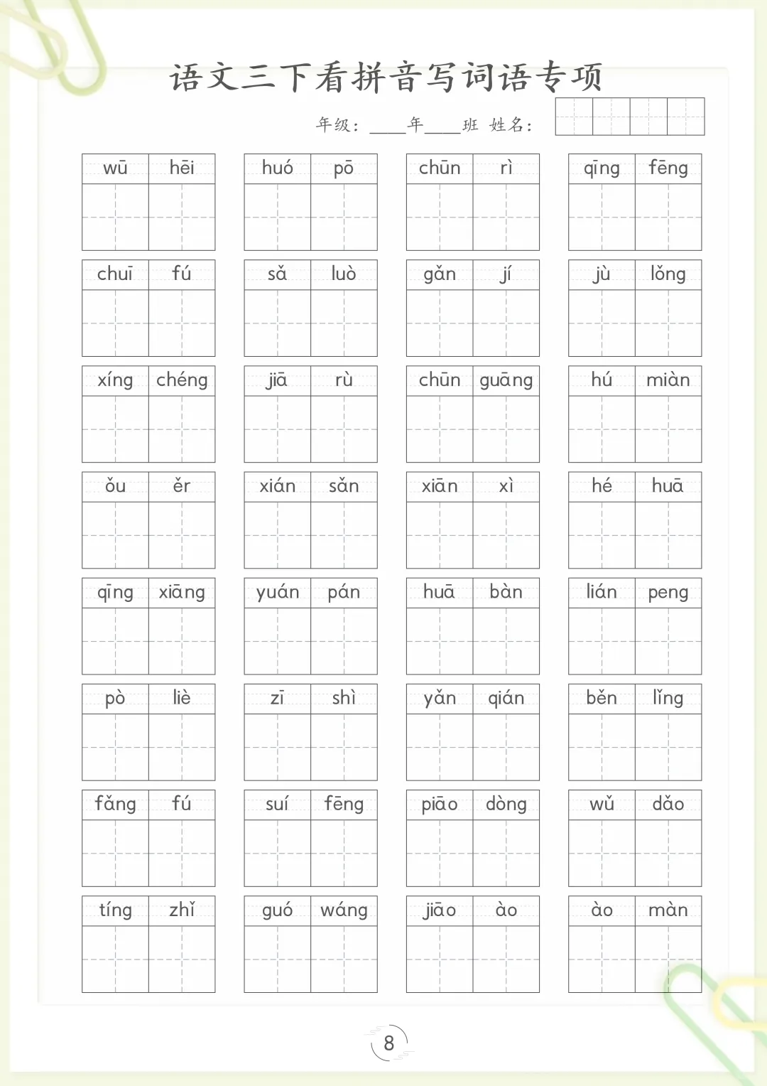 【看拼音写词语专项训练】三下语文,电子版可打印 None (温馨提示:文末有完整领取方式) 免费领取完整电子版 ①:点一点右下角的“赞”和“在看”,感谢!②:在公众号对话框中回复: 5809 ③: 点击小程序领取→电子版资料