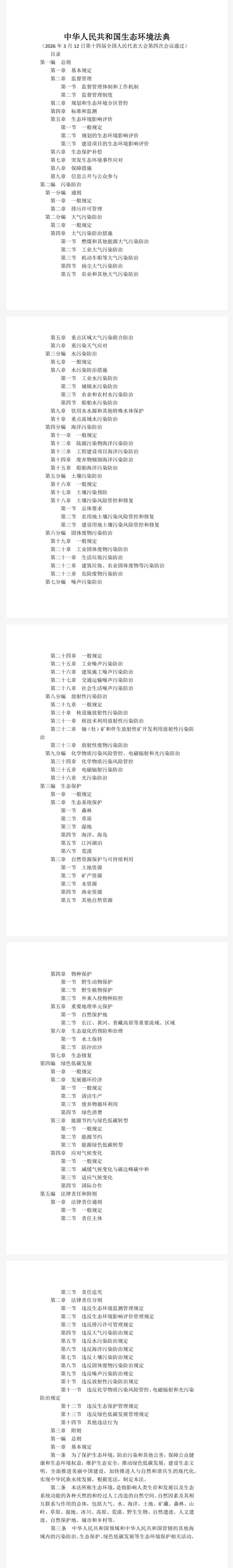 📌《中华人民共和国生态环境法典》全文Word及PDF