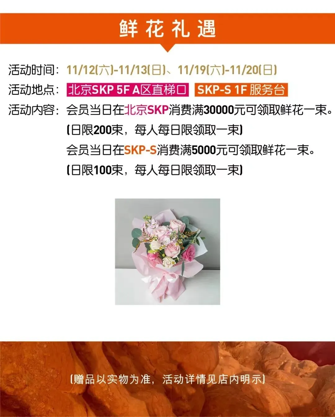 4.SKP-S特别礼遇:11月10日-11月20日期间,任意购买可额外再获得两份香水小样。