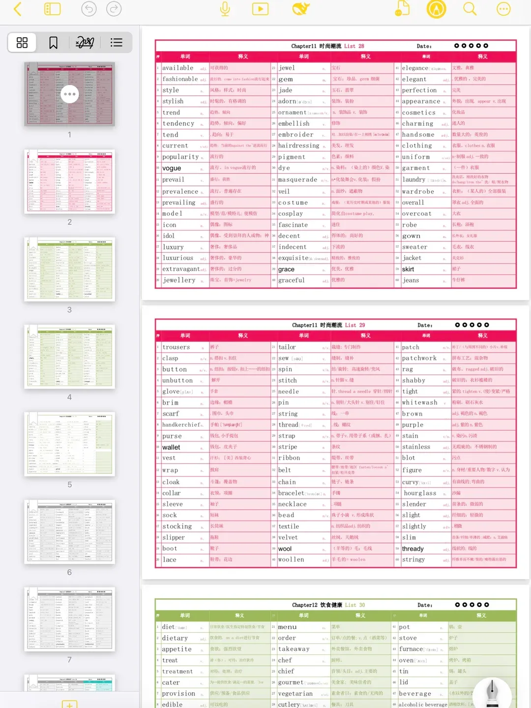 🎯 彩色分类 × 场景记忆,帮你系统掌握高频核心词! 搭配默写表格随时检测,复习更有方向感~