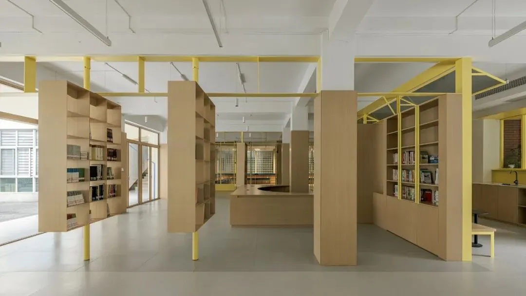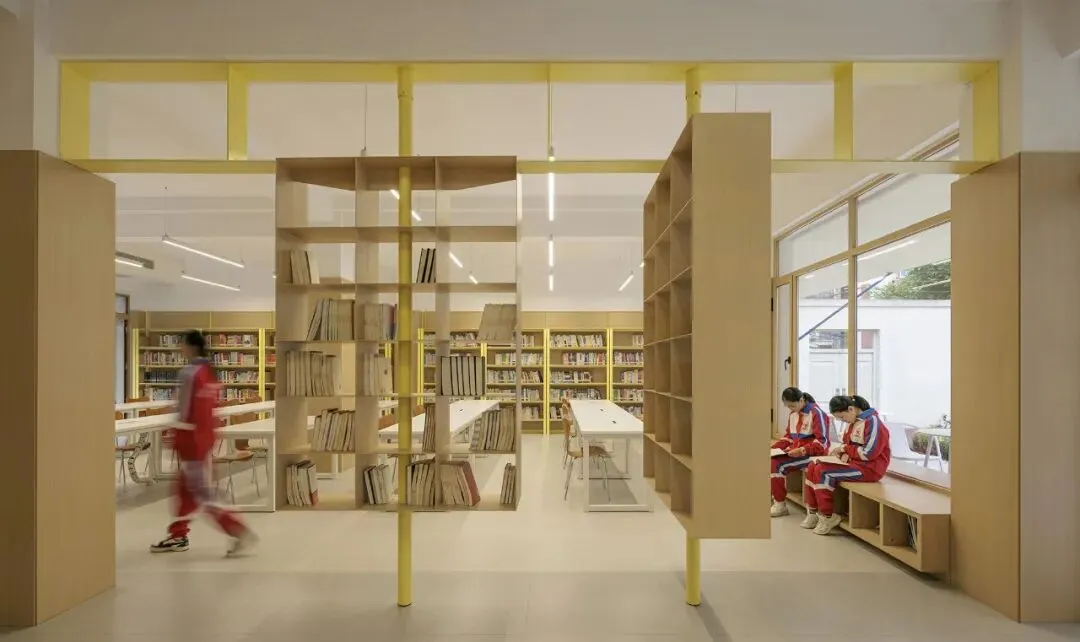 书架旋转开合,插件式更新中学图书室 / 衡建筑