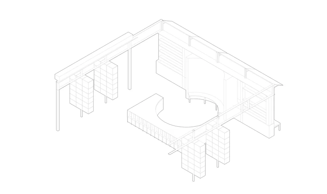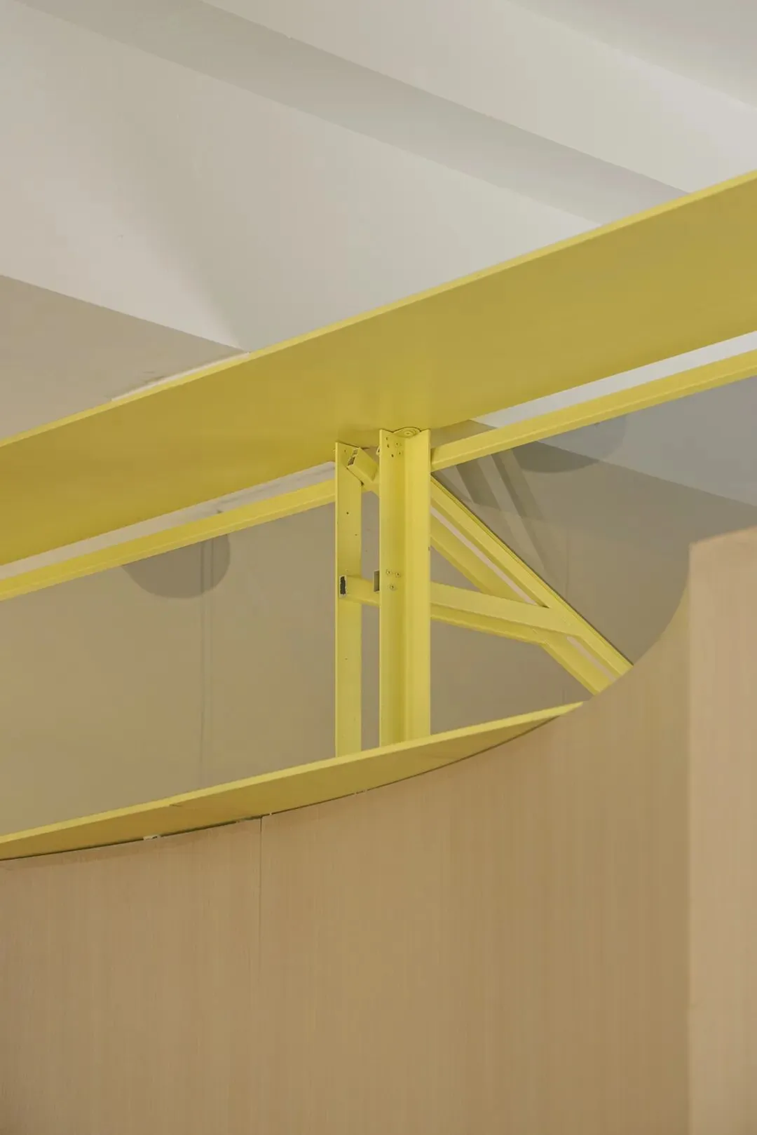 在空间环境上,我们远离了过多的表面装饰,让氛围顺应这套轻质建构逻辑自然“生长”。由钢架与木作组合出的一系列构件,即像散落的“健身器材”,也像是类似是报刊亭、公交车站的构筑物。它们是具体的功能,同时,作为大家习以为常的“生活片段”也代表着某种公共精神的集体记忆符号。