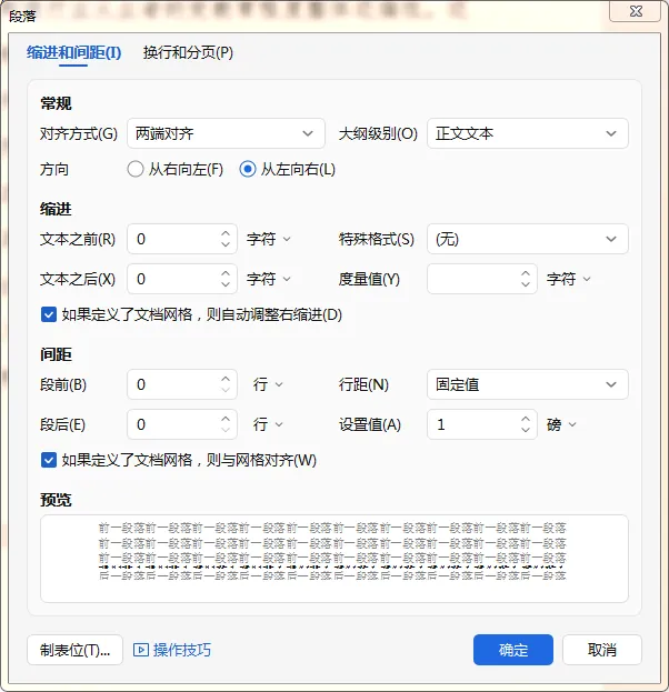 或者保持输入光标在空白页,鼠标右键,选择段落,在段落对话框,缩进和间距-间距栏,行距选择固定值,设置值设为1,点击确定。