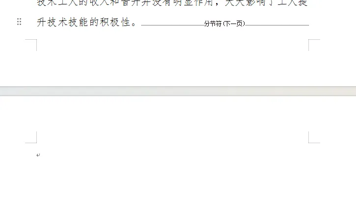 2.看到虚线 ——分页符—— 或 ——分节符(下一页)——,光标放在符号前, 按 Delete删除即可。