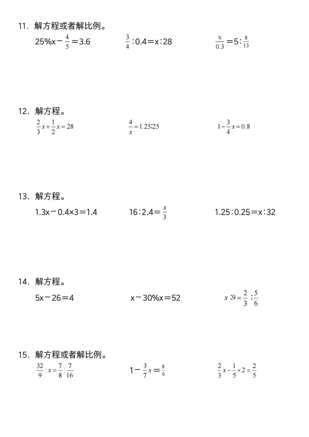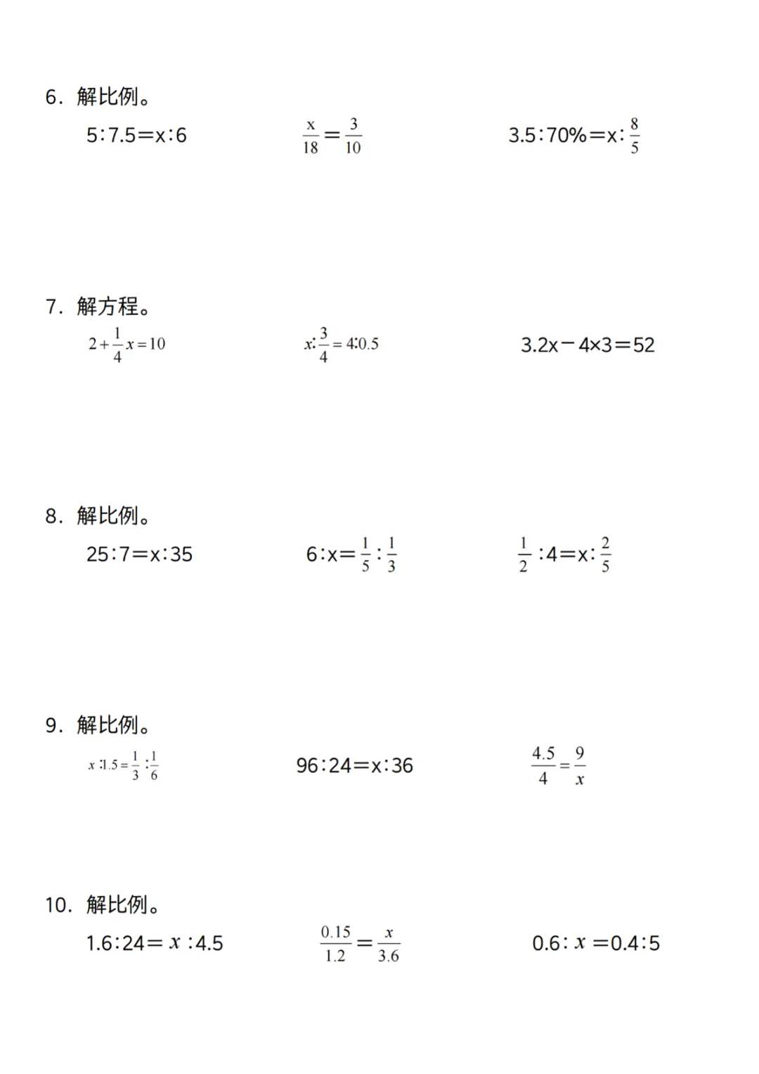 【高清电子版】【通用】六下数学解比例与方程专练100道(一)