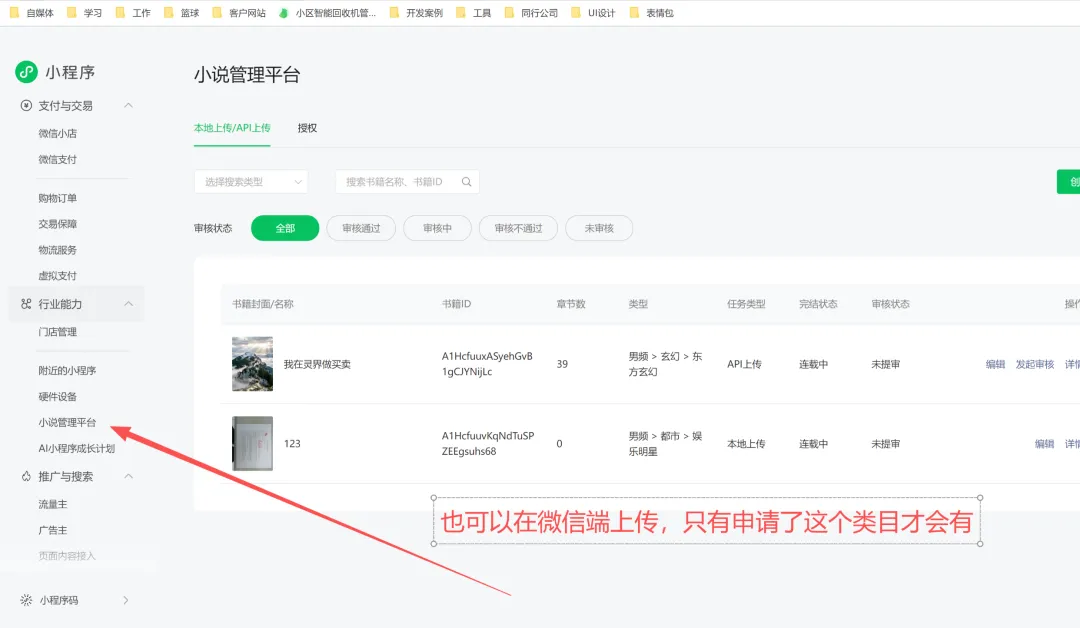 开始要各种资质,什么文化经营许可证。当时我给客户说,不要上架小说的类目,可以搞一个差不多的资质,例如什么电子书、书籍阅读。花了2w搞了个文化许可证,然后我们在后台的话可以上传小说,也可以在微信的平台去上传小说,在后台上传的话,要同步到微信小说。其他的开发都是一些小说的正常的功能了,例如小说、分类、订单、数据分析等。项目还在给客户不断开发中。总的项目开发费用1.5万,技术栈采用的是springboot+vue+mysql。