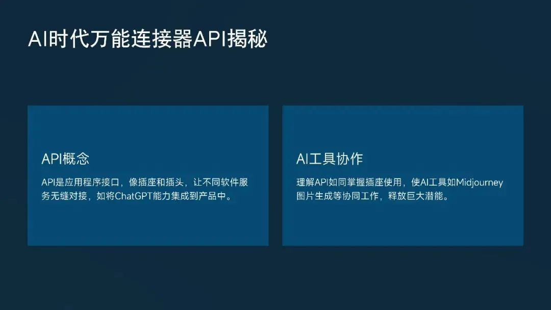 案例:你写了一个自动生成文案的小工具,只要调用OpenAI的API,传一句“写一段咖啡的广告语”,几秒后就能收到AI写的文案。如果没有API,你得自己训练一个同样水平的模型,这几乎不可能。