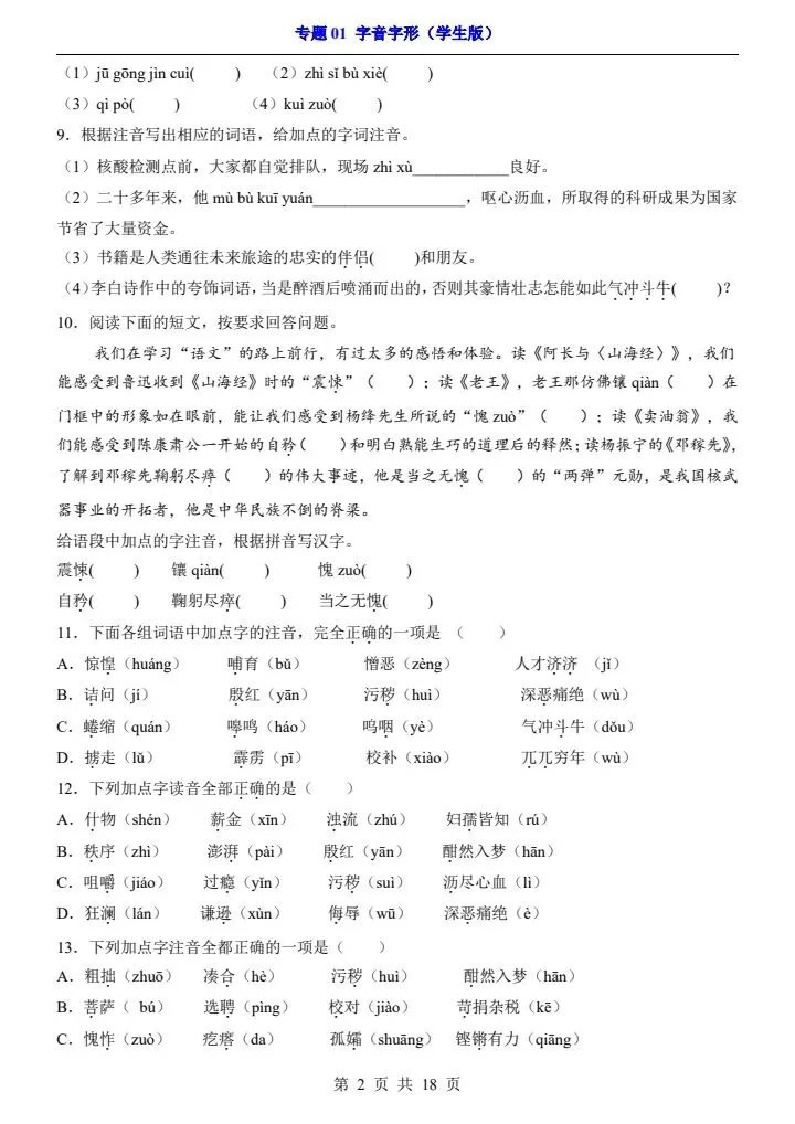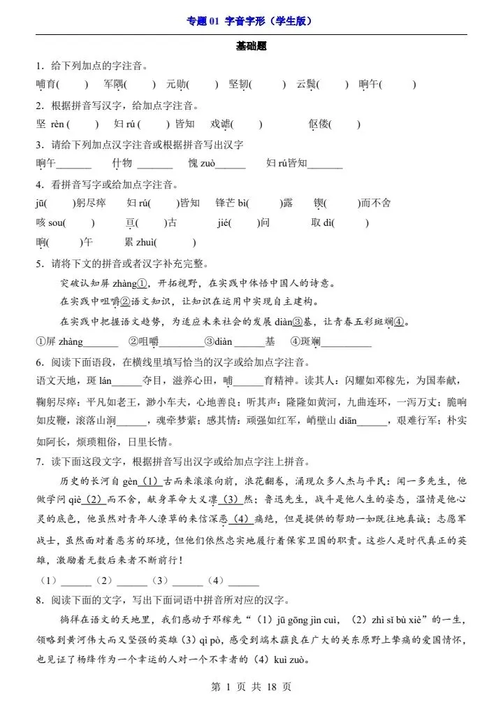 今日分享:七年级下册语文《字音字形专项练习》含答案 电子版可打印,七年级下册语文的字音字形,是期中、期末考的基础必考题,也是最容易丢分的“细节坑”!这份基础题专项,帮孩子系统梳理课本核心易错字音、字形,夯实基础,考试不丢冤枉分!拉至文末可直接领取完整电子版