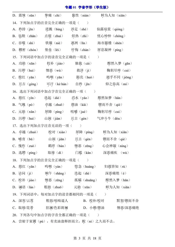 七下语文|字音字形专项练习 含答案 电子版可打印