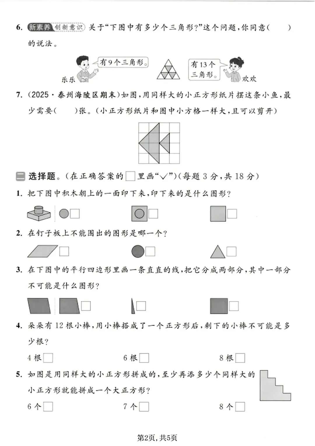 两份试卷一基一拔、日常打基础、考前拓思维,搭配使用可全面提升图形认知与动手能力。