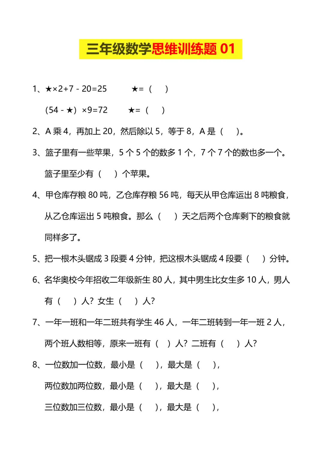 三年级下数学思维训练题9套(可下载打印) 关注公众号,每天获取最新推荐资料。 完整内容可至文章末尾 小程序 内免费下载 点击打开小程序获取当前资料 ▼ 每天快捷获取更新的学习资料可收藏“慧选小站”小程序到“我的小程序”中,即可快速打开,具体操作步骤如下演示: