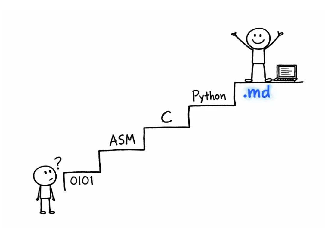 就像从汇编升级到 Python 没让算法设计变简单,从 Python 升级到 markdown 也不会让系统设计变简单。抽象层每上升一级,对使用者的判断力要求换一种形式,但从来没降低过。