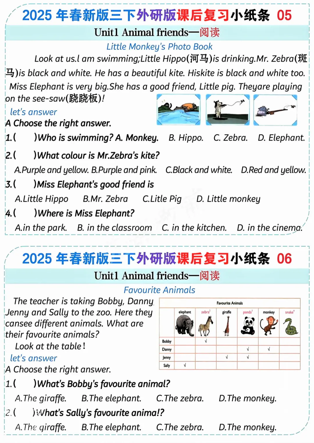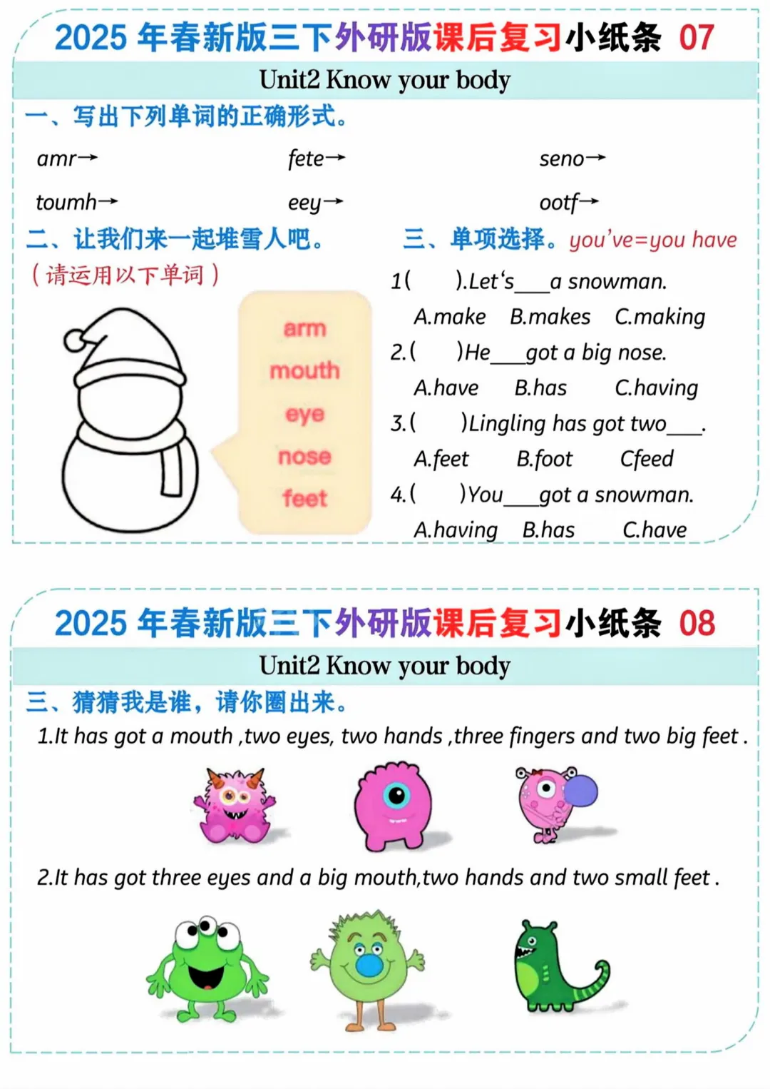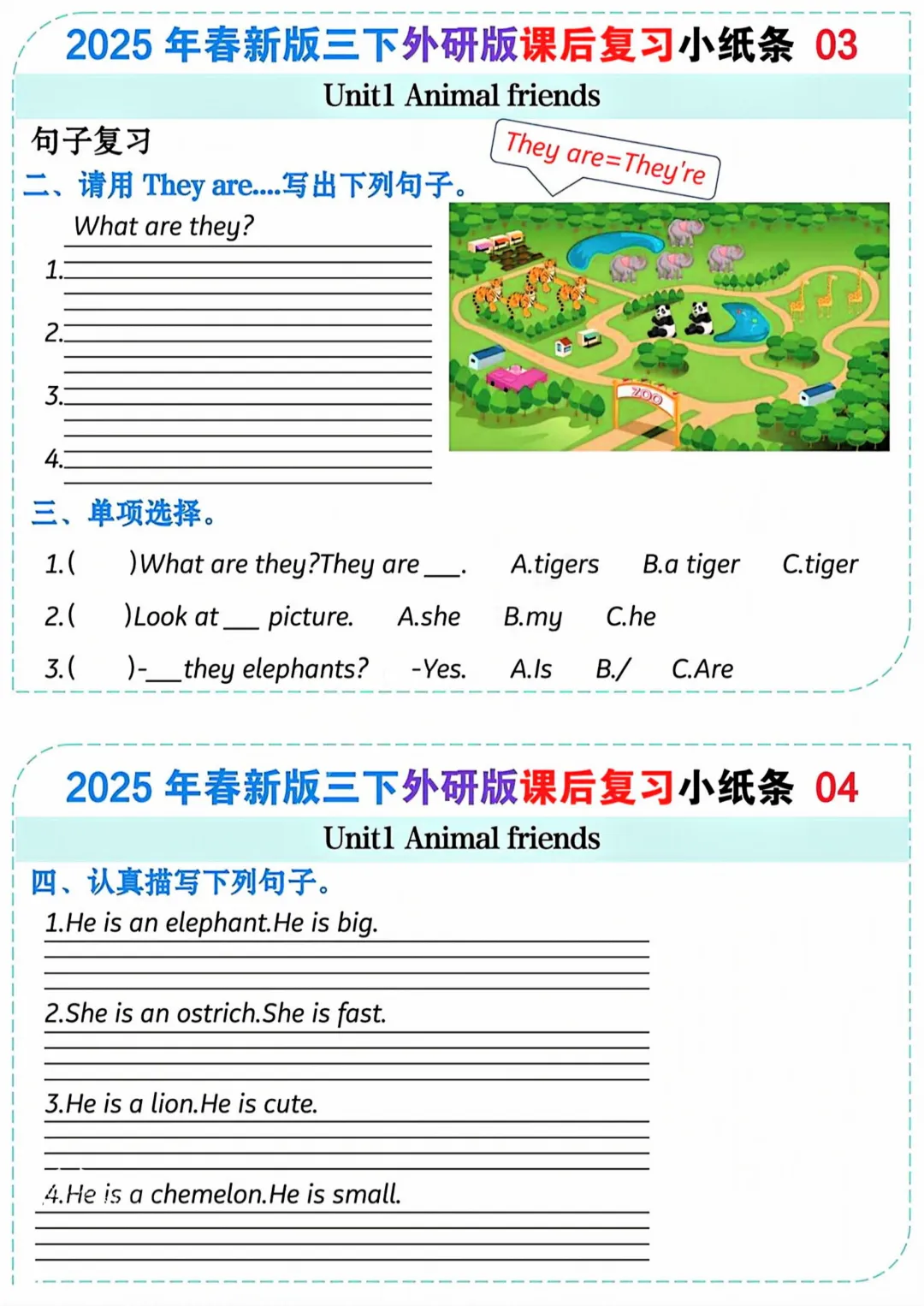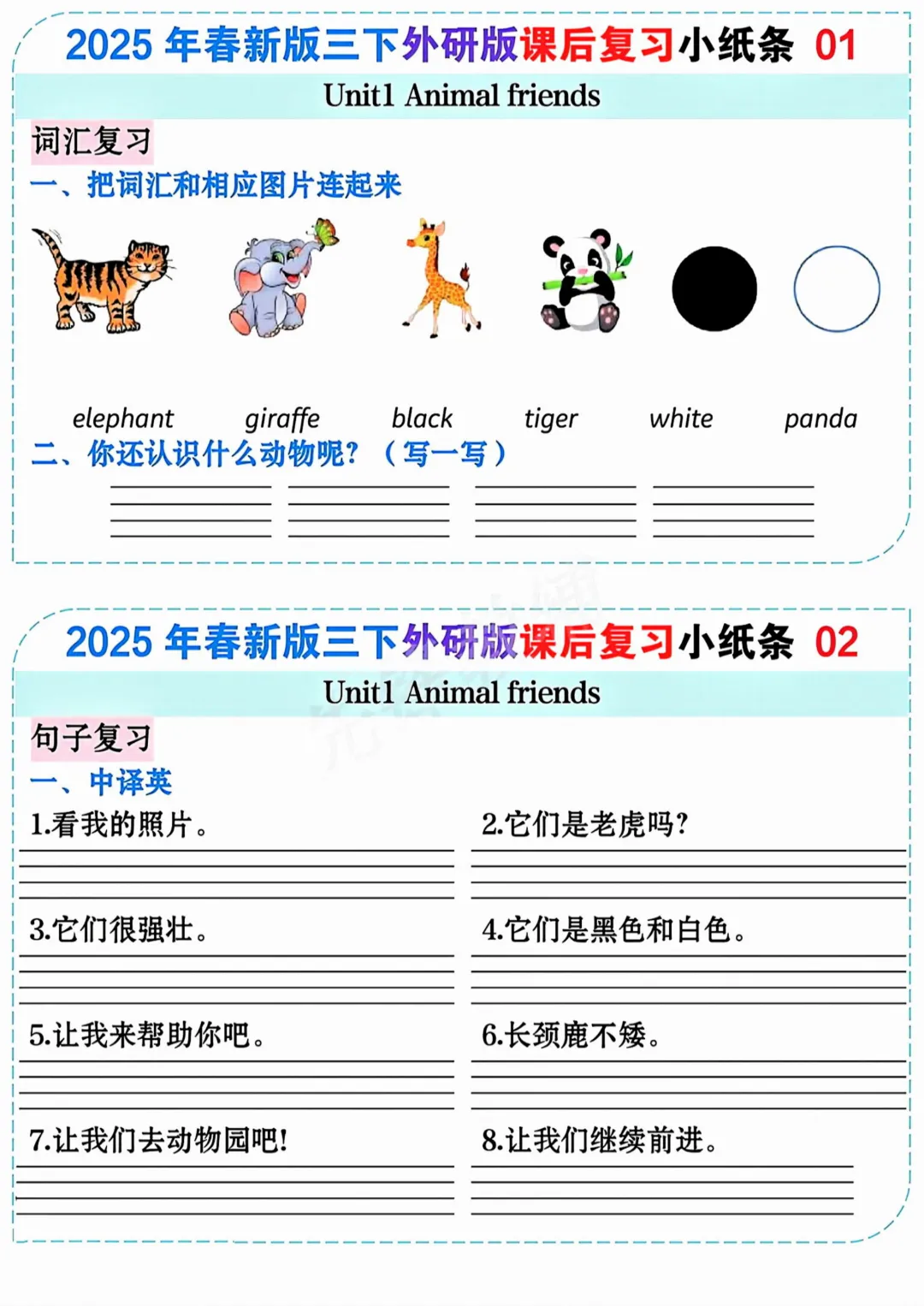 26春三年级下册英语课后复习小纸条《外研版》|高清电子版可打印