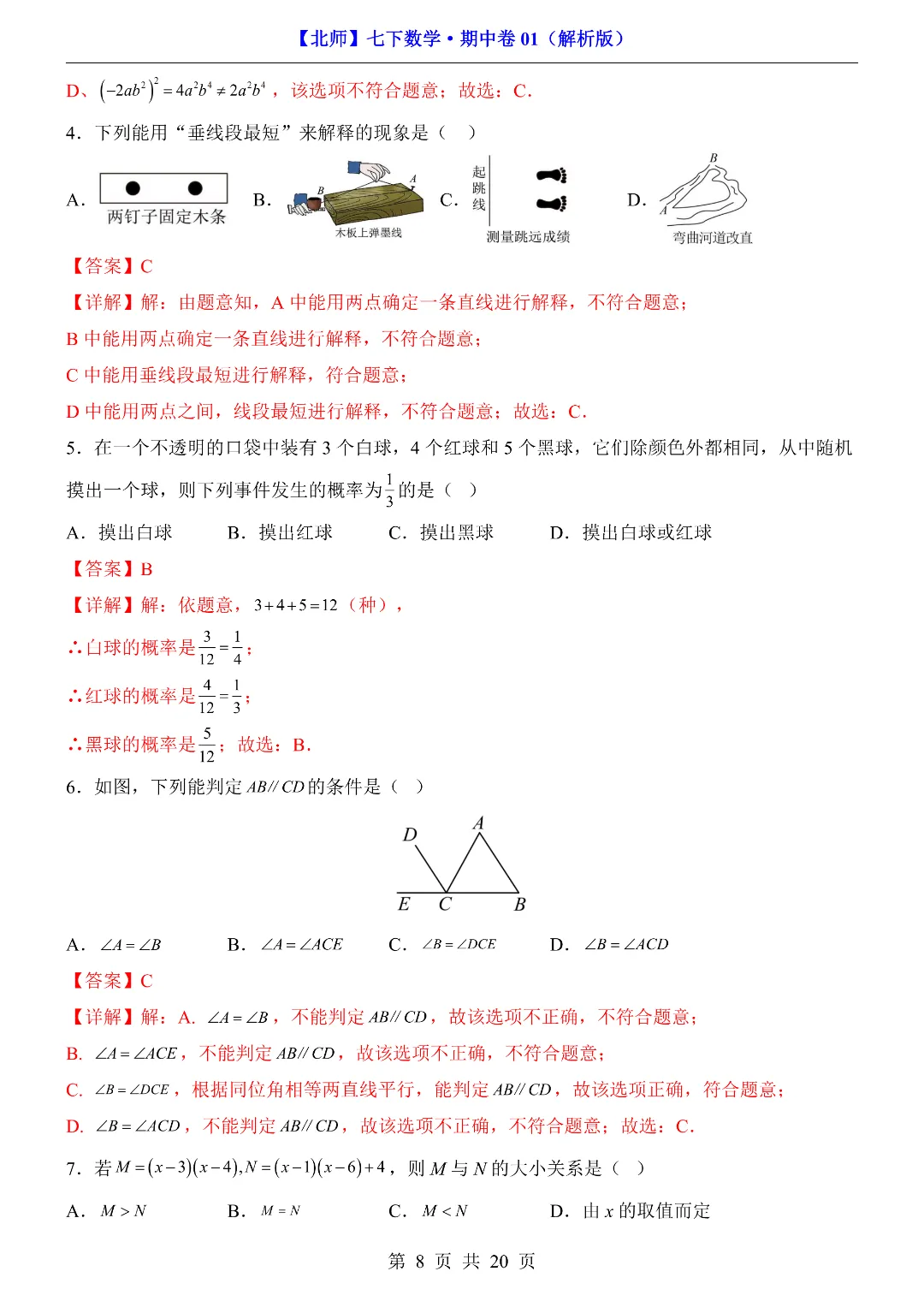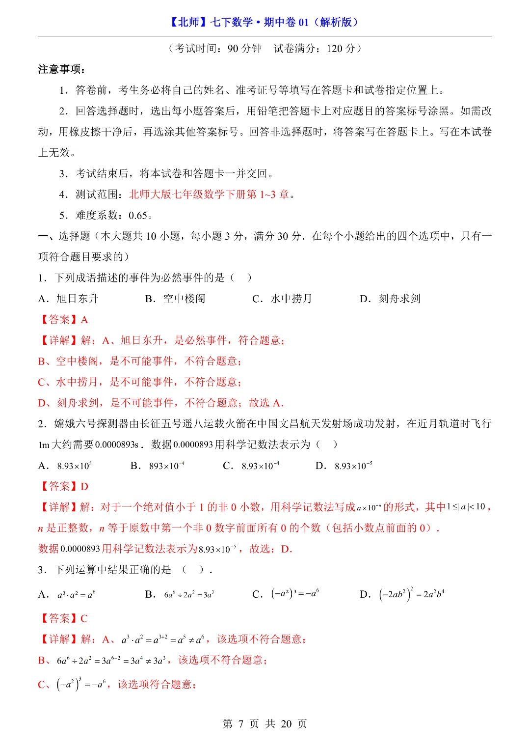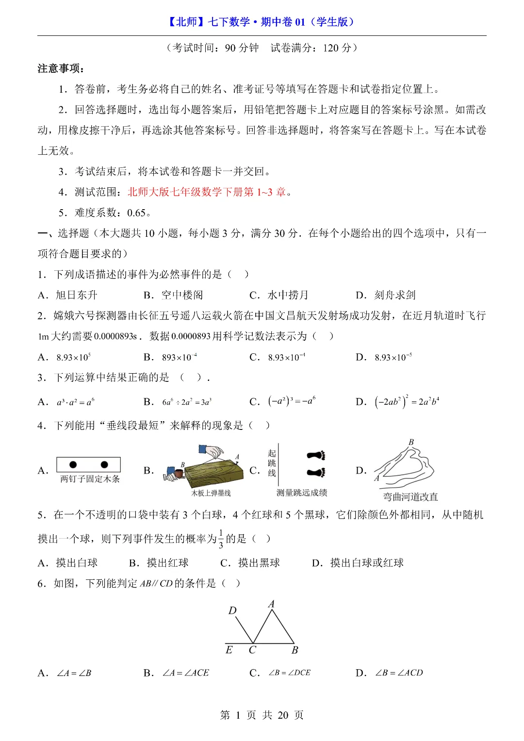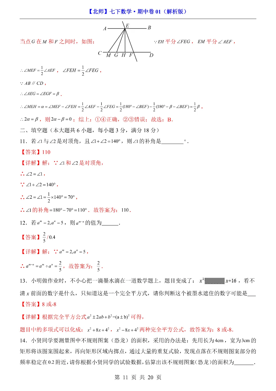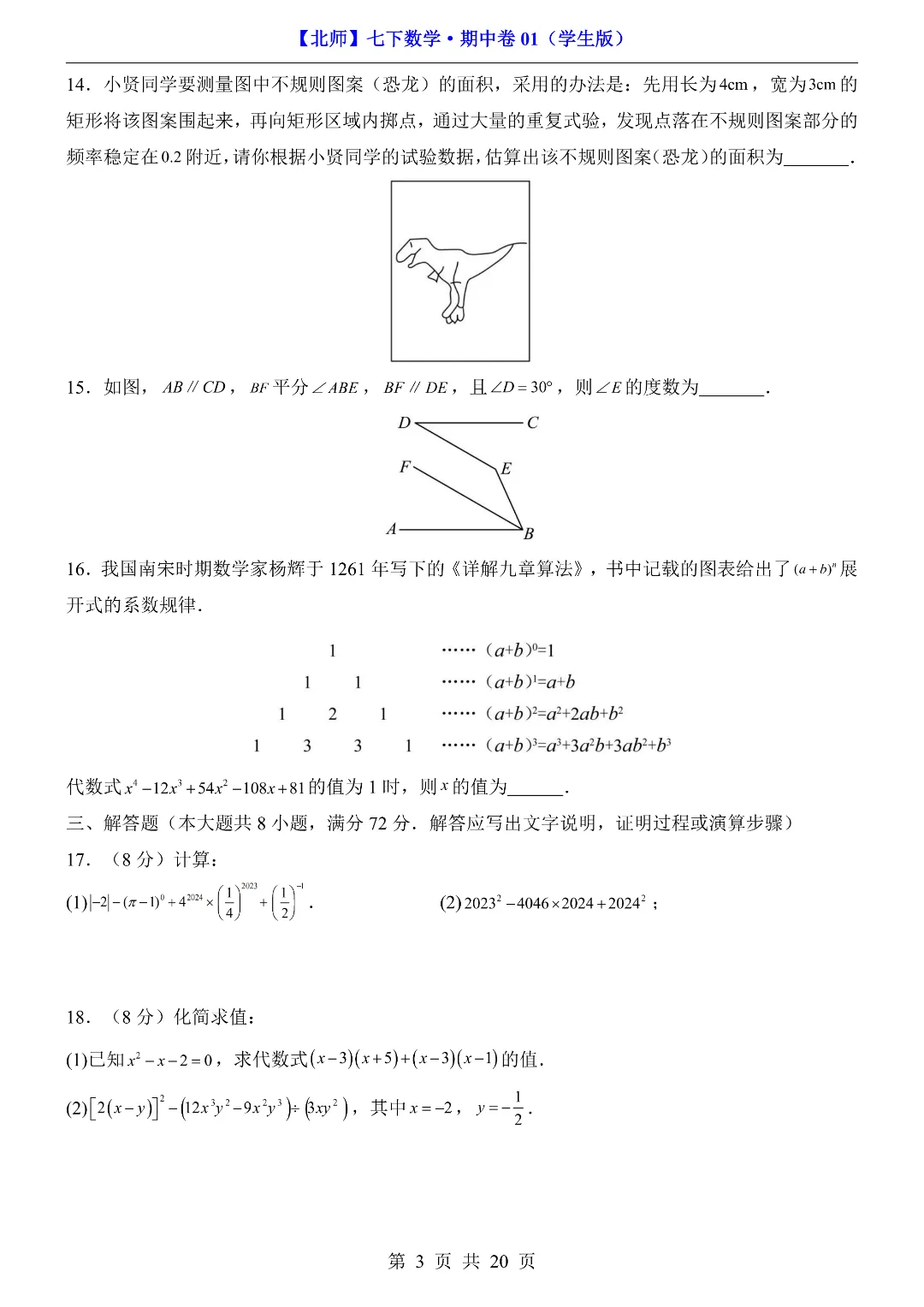 今天给家长们分享的是:26年春新七年级初一下册北师大版数学《期中拔尖测试卷》含答案解析‖高清电子版可打印