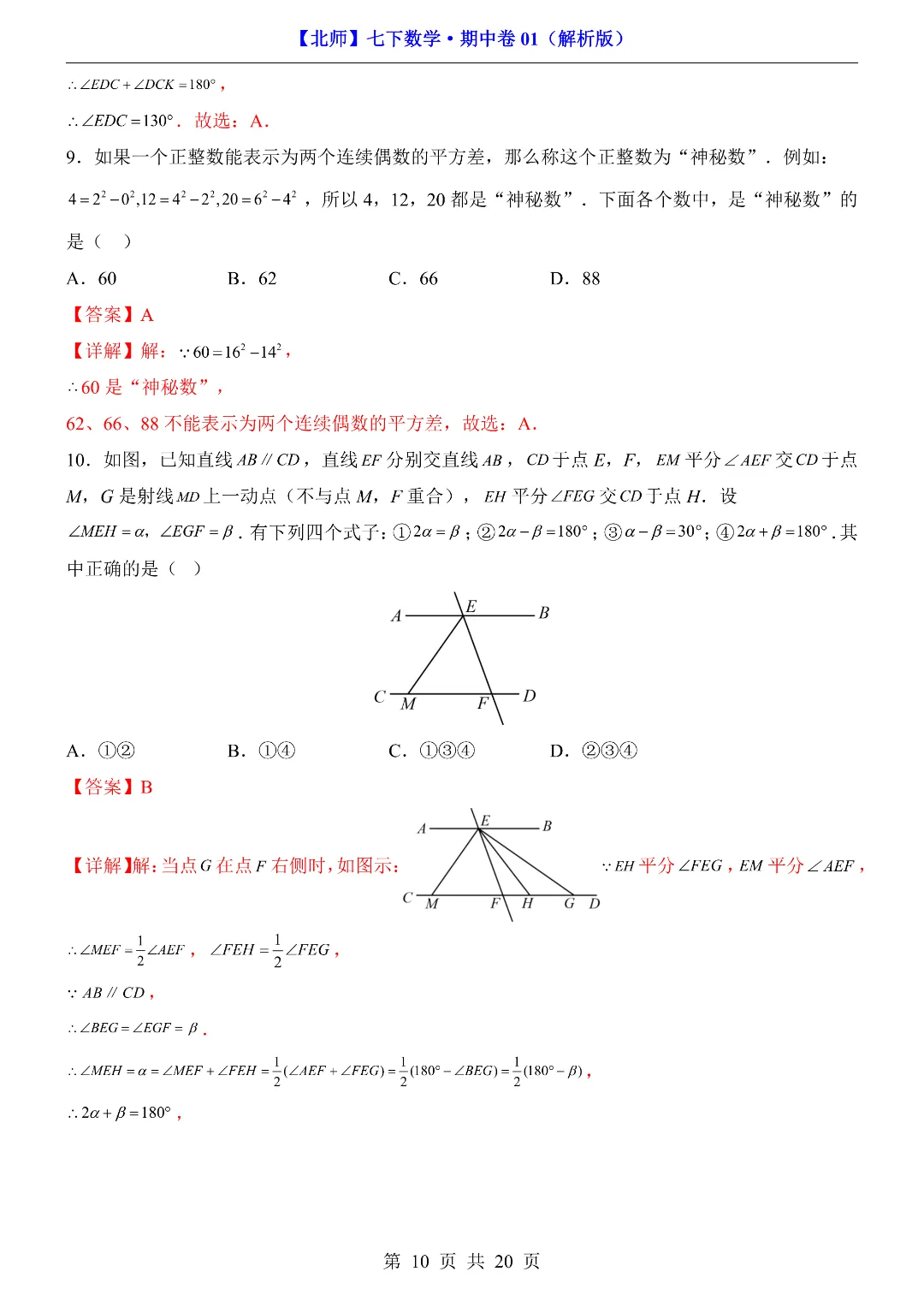 26年春新七年级初一下册北师大版数学《期中拔尖测试卷》含答案解析‖高清可打印