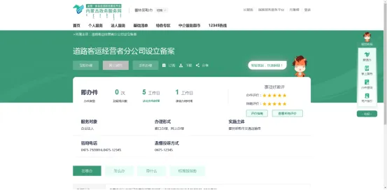 蒙速办APP操作指南丨霍林郭勒市全程网办事项系列操作指南之道路客运经营者分公司设立备案