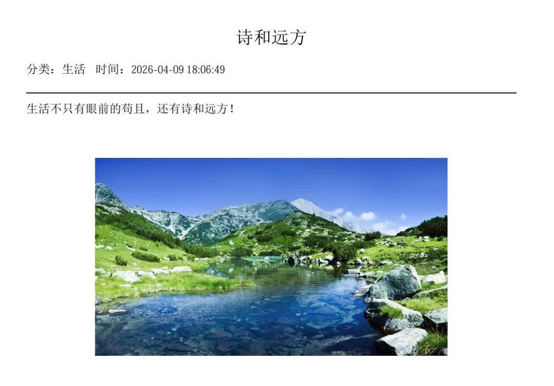<!DOCTYPE html><html><head><metacharset="utf-8"><style>body{font-family:sans-serif;line-height:1.6;margin:20px}h1{text-align:center}.meta{color:#666;margin-bottom:20px}.content{white-space:pre-wrap;margin-bottom:30px}img{max-width:100%;height:auto;margin:10px 0}</style></head><body><h1>{{ note[2] }}</h1><divclass="meta">分类:{{ note[4] }} | 时间:{{ note[6] }}</div><divclass="content">{{ note[3] }}</div>{% if note[5] %}<imgsrc="{{ base }}static/uploads/{{ note[5] }}">{% endif %}</body></html>