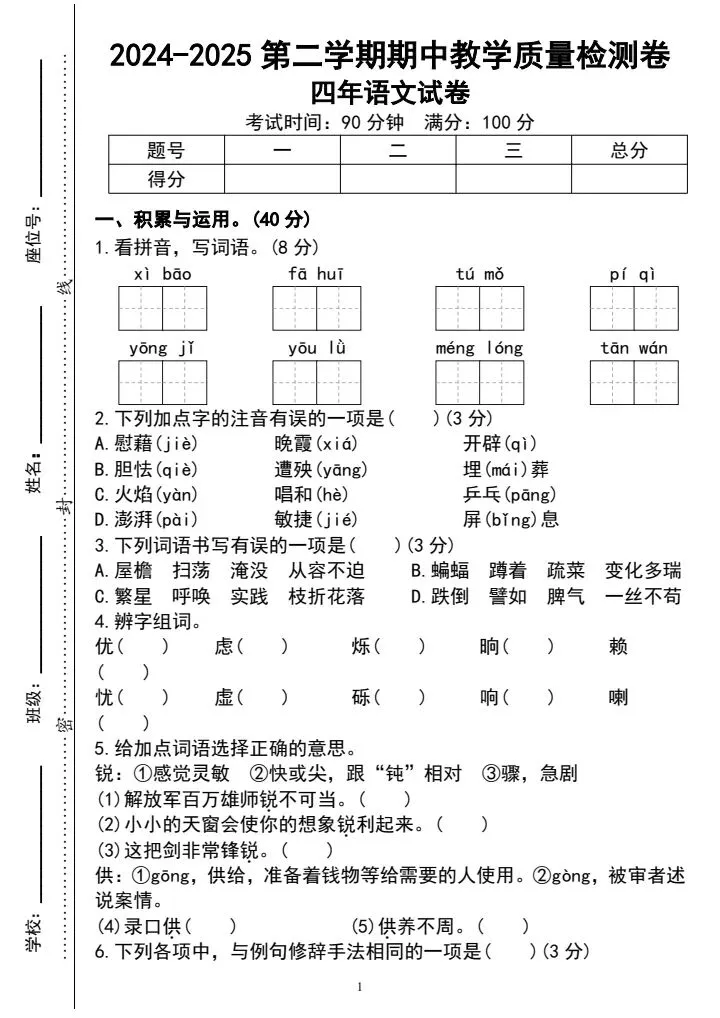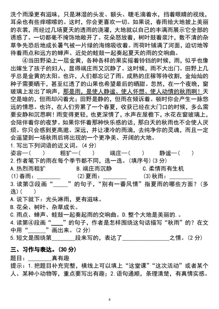 今日份分享四年级下册语文期中测试卷合集含答案(完整电子版可打印)!这份资料已经整理成可打印版本,方便孩子随时翻看学习,建议家长先收藏,再转发给身边有需要的家庭,一起帮助孩子高效学习~