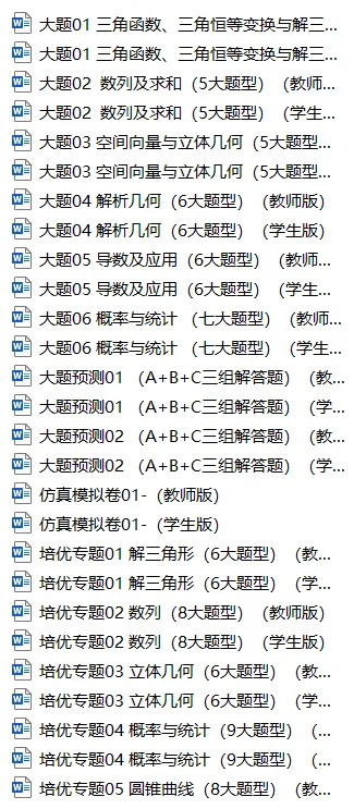 无论你是基础薄弱,想稳拿大题基础分;还是冲刺高分,想突破压轴题瓶颈,这套素材都是高考数学备考的核心利器。用专项训练精准突破,让高考数学大题不再是“拦路虎”,而是提分加分的“垫脚石”,助力考生在2026年高考中发挥出色,取得理想成绩!