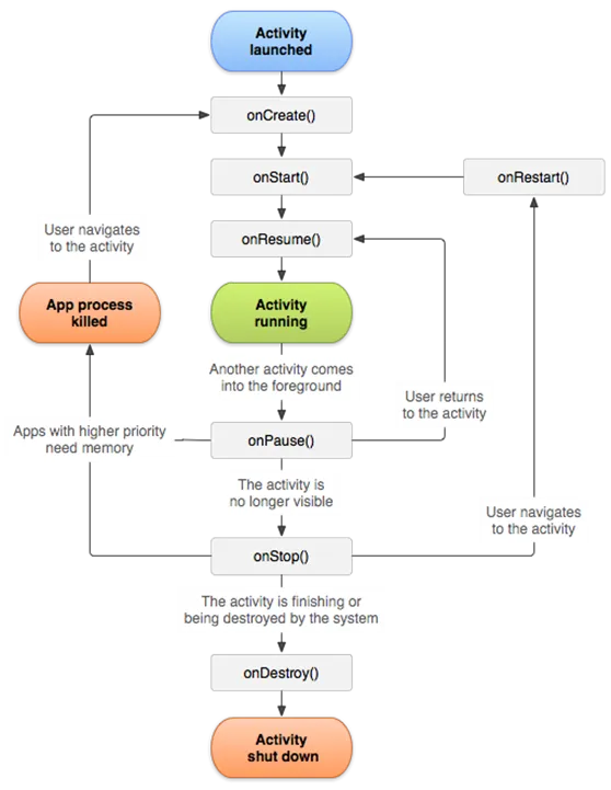 这些状态有些是用户可见的,有些状态是不可见的,是由系统进行处理的。如运行状态和暂停状态是用户可见的,而停止状态和销毁状态,对于用户来说是不可见的,是在后台完成了状态的转换过程。