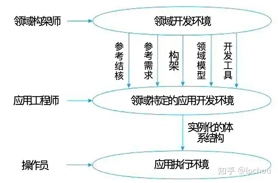 注意:这里需要记住不同环境下对应不同的开发人员,即领域架构师在领域开发环境;应用工程师在领域特定的应用开发环境;操作员在应用执行环境