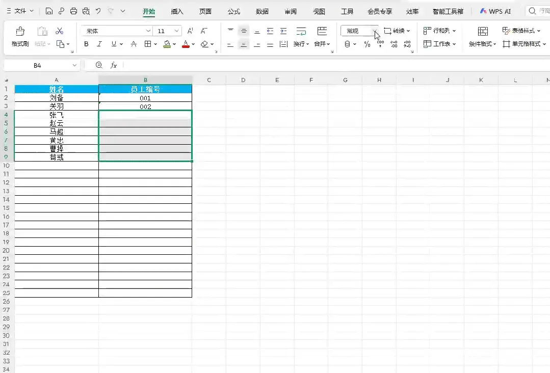 WPS/Excel默认单元格格式是 “常规”。