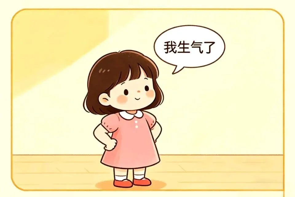 她会叉着腰说“我生气了”,也会委屈巴巴地说“我很难过”。